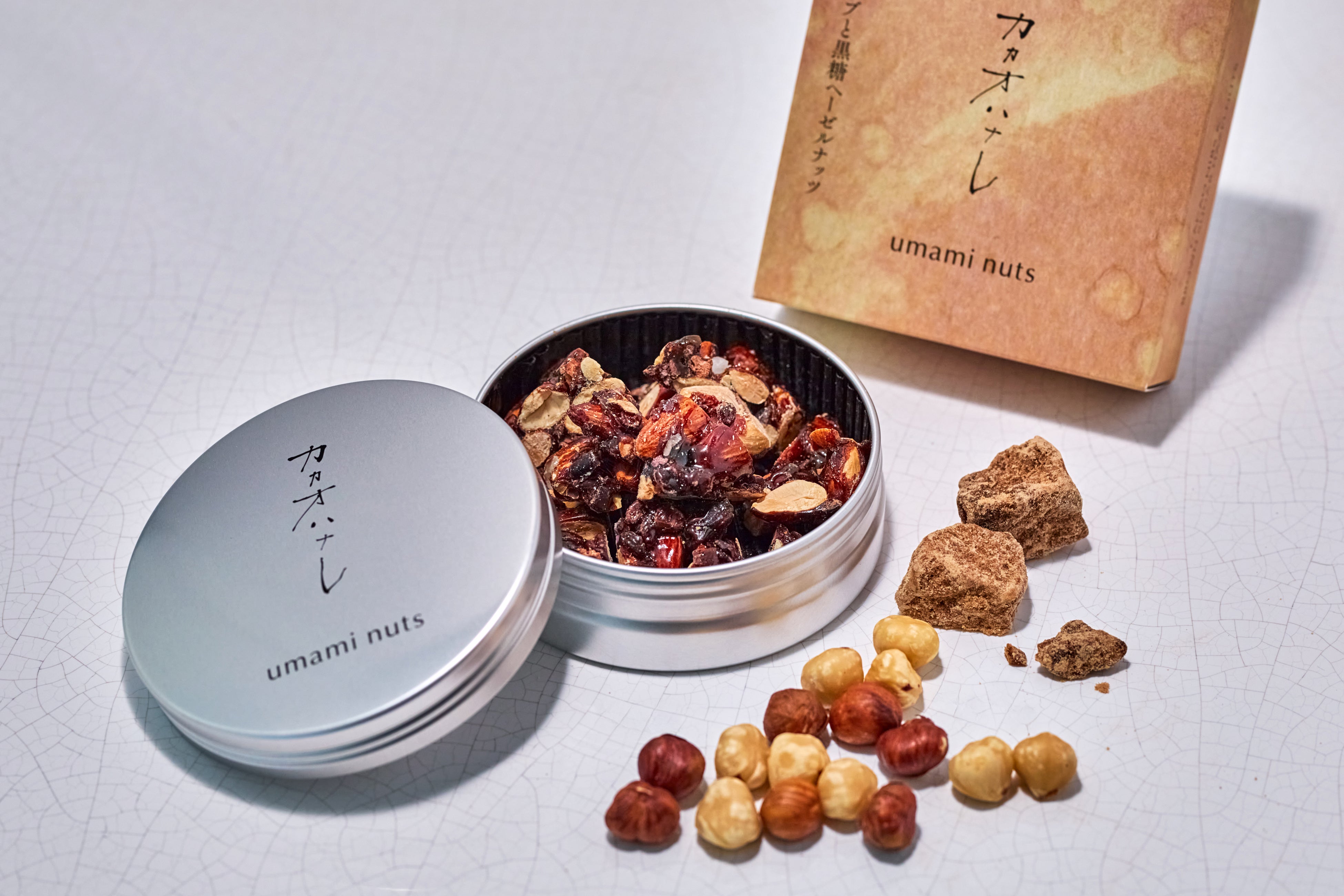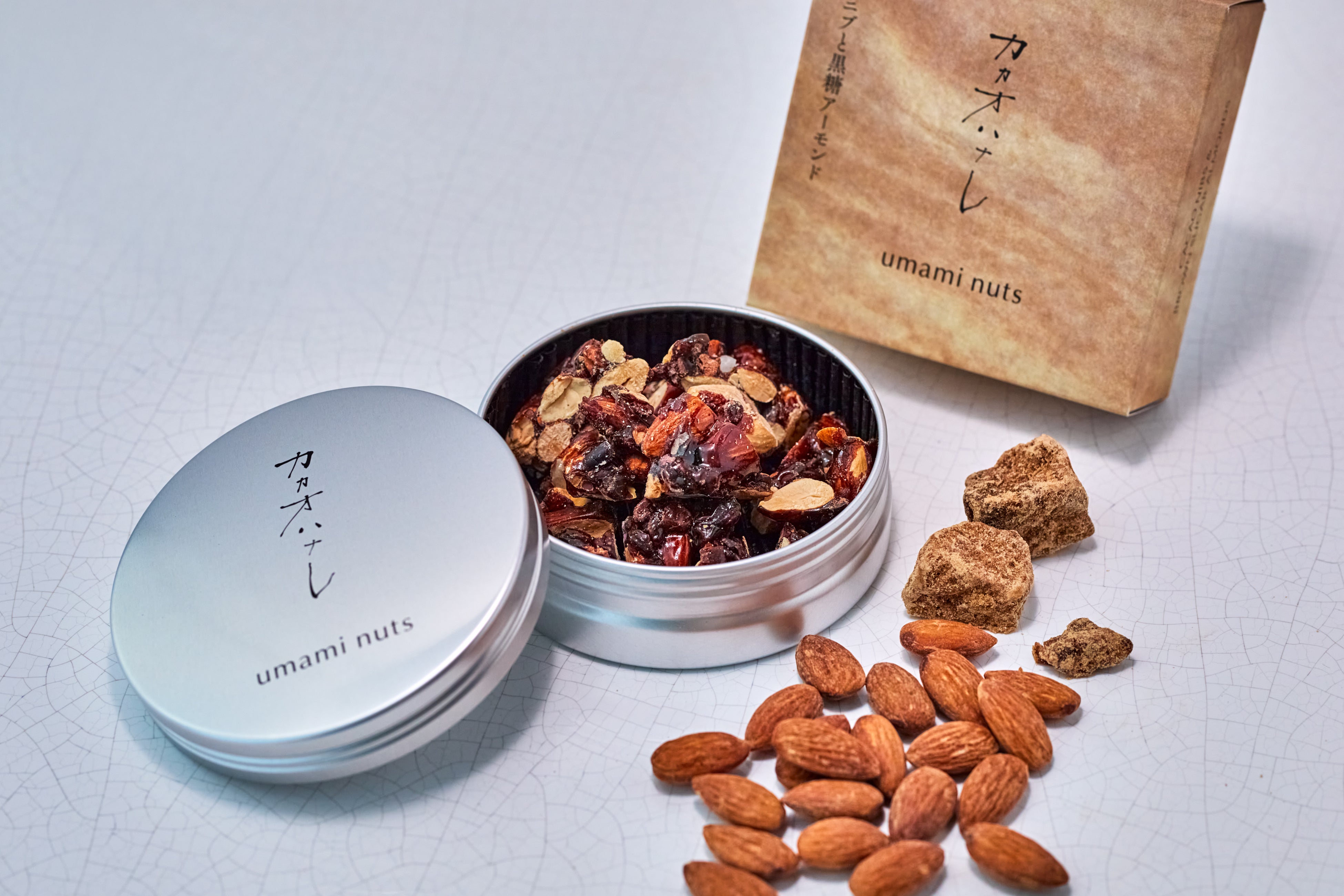 umami nutsは、鹿児島の創業70年の株式会社大阪屋製菓が手がけるプレミアム豆菓子ブランド。”豆菓子で笑顔を届けたい”との想いの元、日本が誇る豆菓子で世界中の人に口福を届けるために誰も手掛けたことのない最高峰を作り出しています。今までにはない独創的なフレーバー、噛んだ瞬間に感じる香りの豊かさと食感の心地よさ。食べ進めるほどに変化する味わいと余韻。ひと粒をゆっくりと味わいたくなる豆菓子です。伝統的な「りん掛け」や「和掛け」といった製法を活かしながら、現代の嗜好に合わせた革新的かつユニークなフレーバーを追求し、アーモンドやマカダミアナッツ、ピスタチオなどの高品質なナッツをベースに、黒糖、醤油、ポルチーニ、レモンなどのグローバルにも人気のフレーバーで、五感で楽しい豆菓子を展開しています。ギフトや手土産としても人気で東京・丸の内の店舗では、季節限定商品やセット販売も展開。