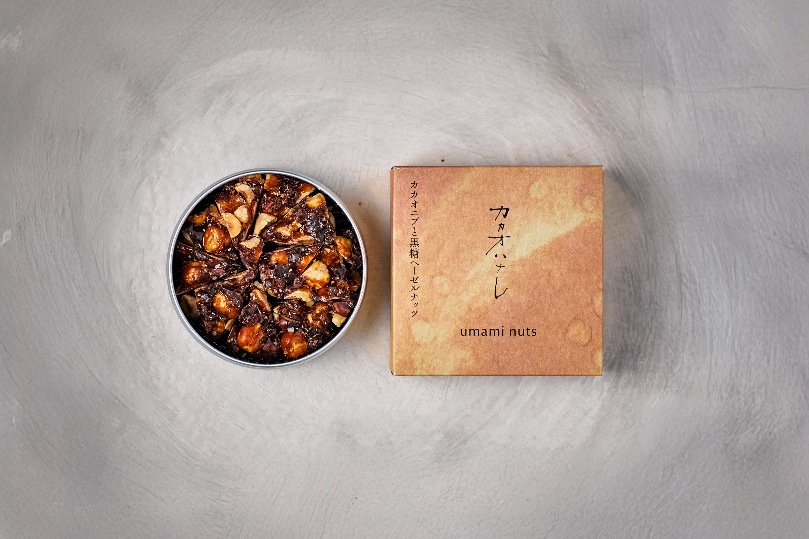 今回のコラボレーションは、「カカオハナレ」創業者の石原紳伍氏が、新たな和の素材や伝統技法と出会うことでこれまでにないカカオの美味しさを引き出せるのではないか、と考える中でのumami nutsとの出会いがきっかけです。素材の力強さと黒糖のやさしい甘みに心を打たれ、素材への誠実な姿勢、丁寧な手仕事、 そして“日本から世界へ本物を届けたい”という哲学を共有する2つのブランドが新たな豆菓子で新たなチョコレート文化を紡ぐことを目指し、コラボレーションが実現しました。