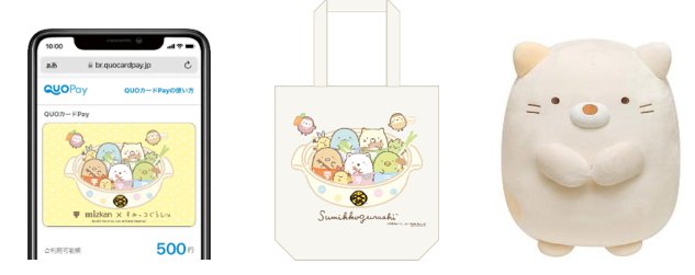 キャンペーン期間中、対象商品を購入したレシートをLINEでアップロードし、ポイントを貯めて応募すると、オリジナルQUOカードPay500円分やオリジナルデザインのトートバッグ、すみっコぐらし特大ぬいぐるみなどが合計1,003名様に抽選で当たります。
