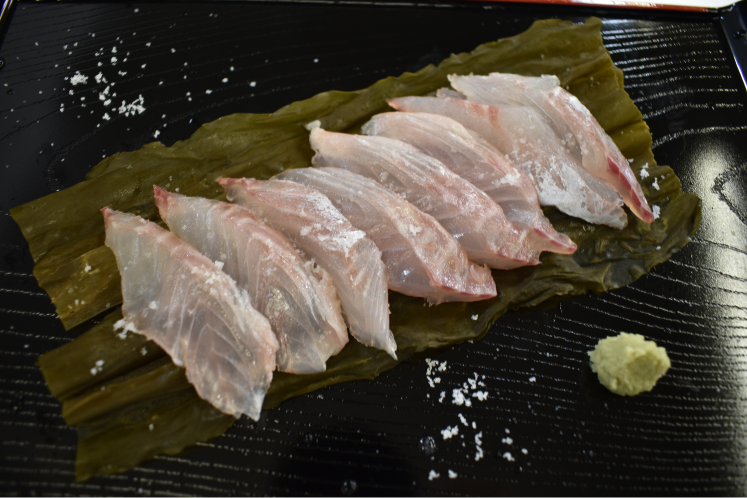 季節の天然魚(昆布〆)×2皿