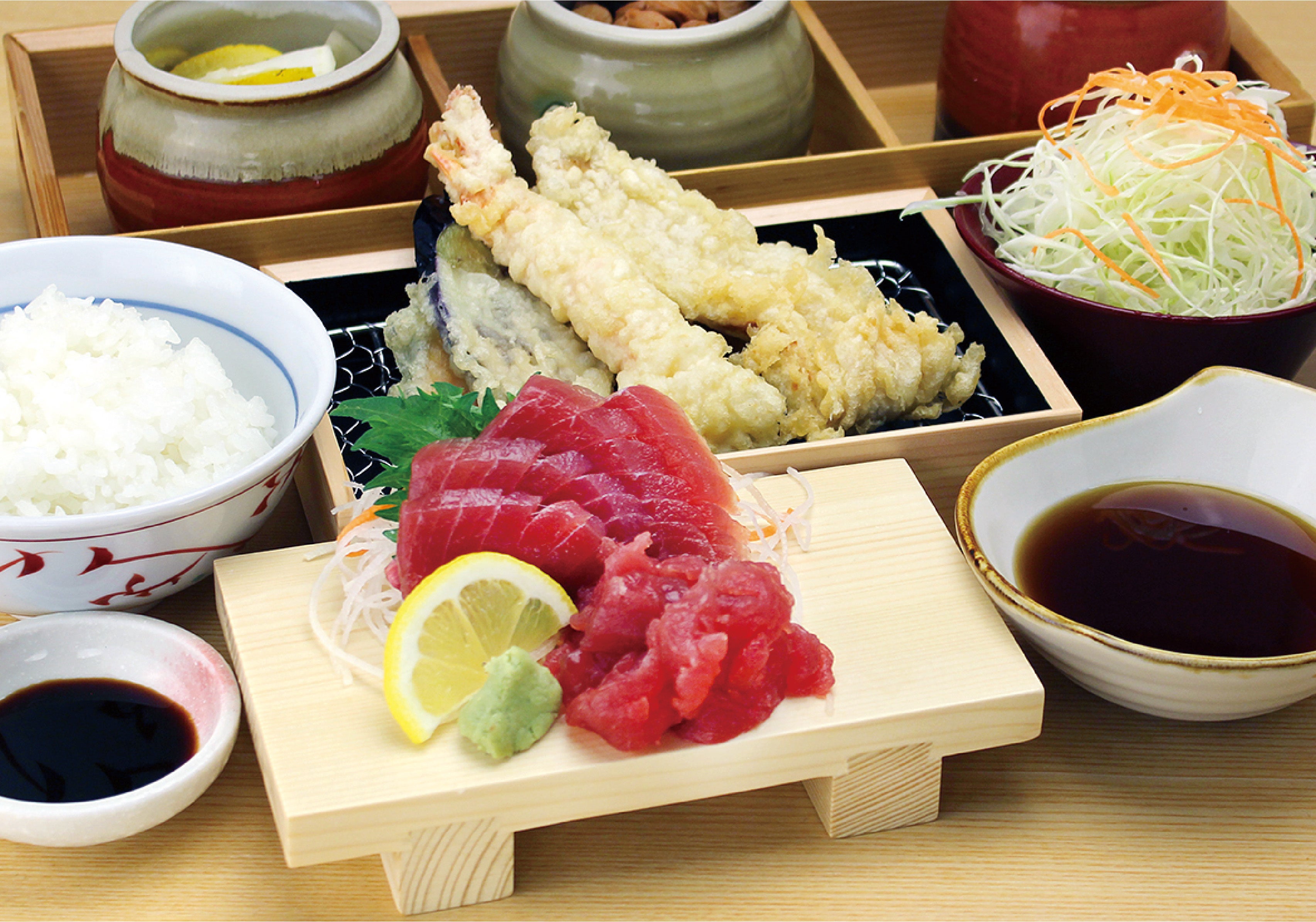 さらに、地元・和歌山の南紀勝浦漁港で水揚げされた生まぐろを使用した「刺身」などもご用意。天ぷらとあわせて、新鮮な海の幸の味わいをご堪能いただけます。