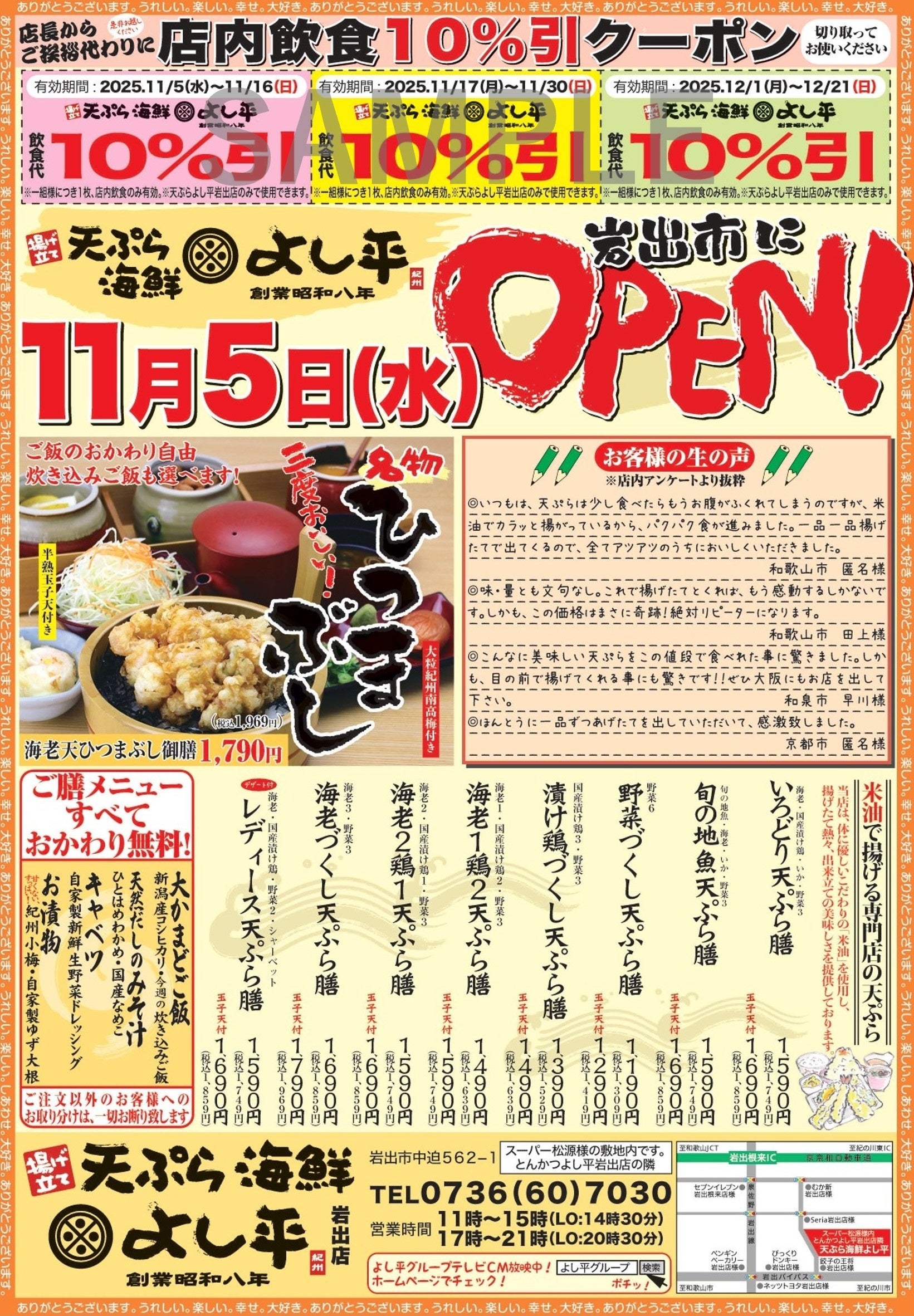 店舗名:天ぷら海鮮 よし平 岩出店