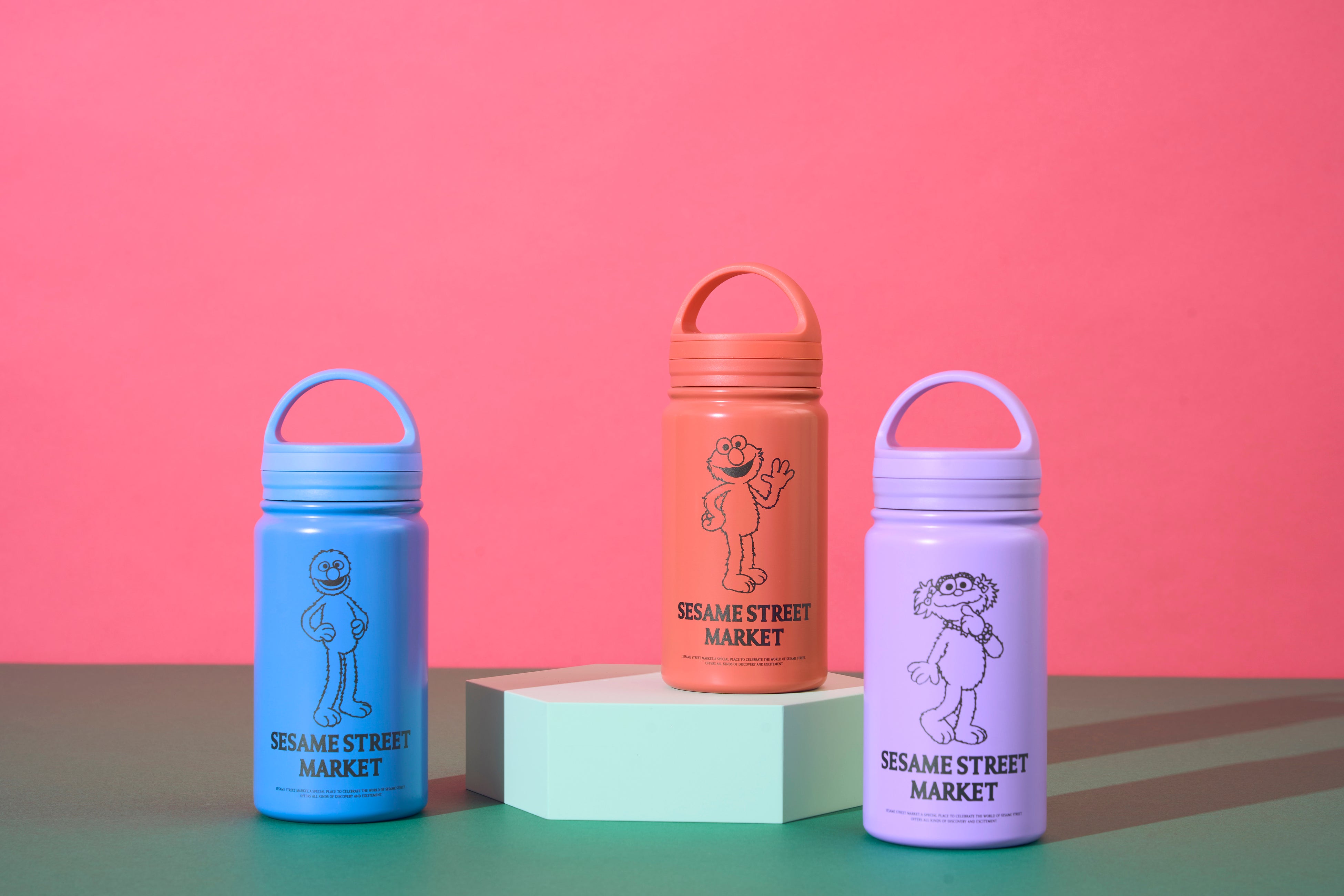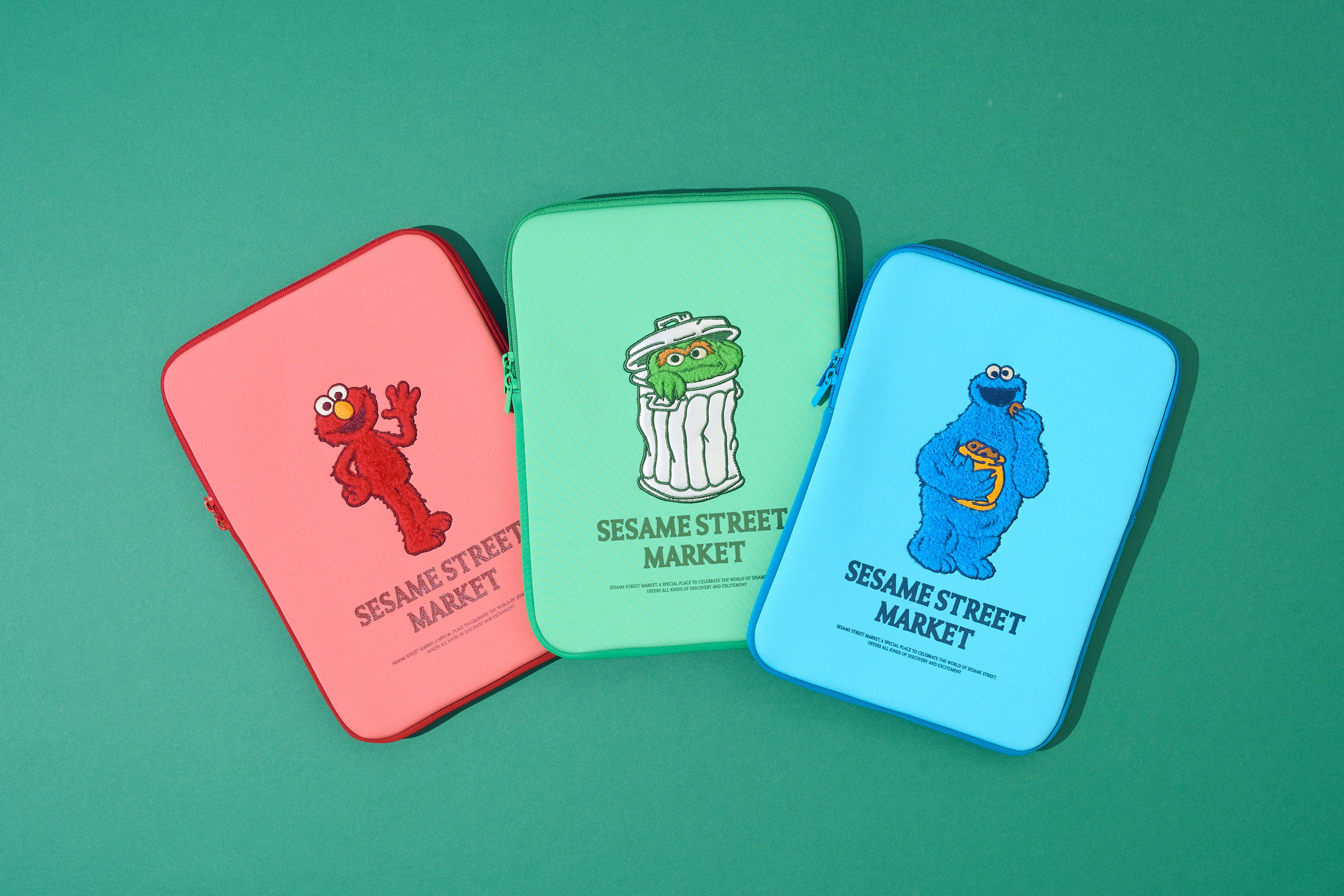 (左より:レッド(エルモ)、グリーン(オスカー)、ライトブルー(クッキーモンスター))