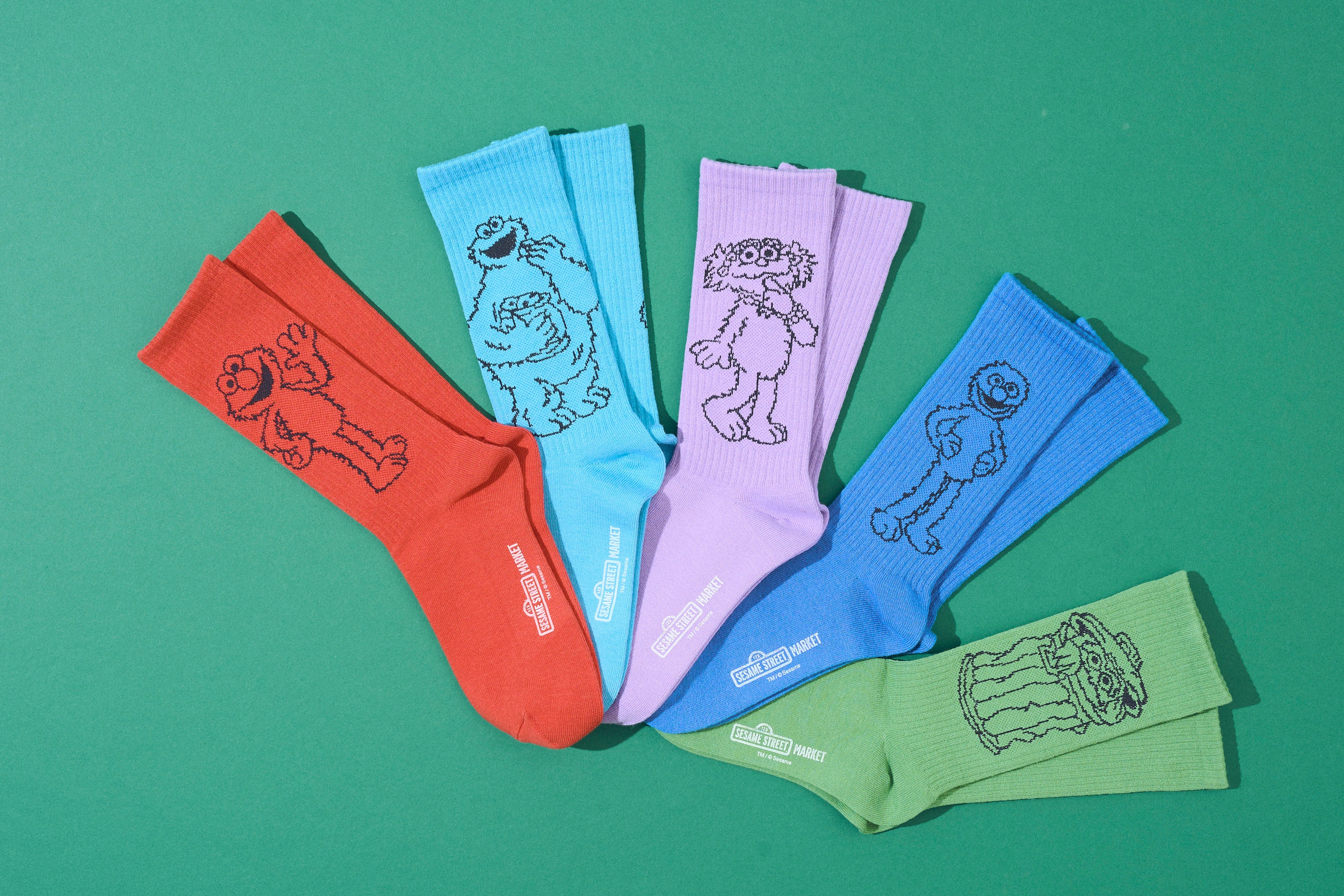 (左より:レッド(エルモ)、ライトブルー(クッキーモンスター)、グリーン(オスカー)、ネイビー(グローバー)、パープル(ゾーイ))