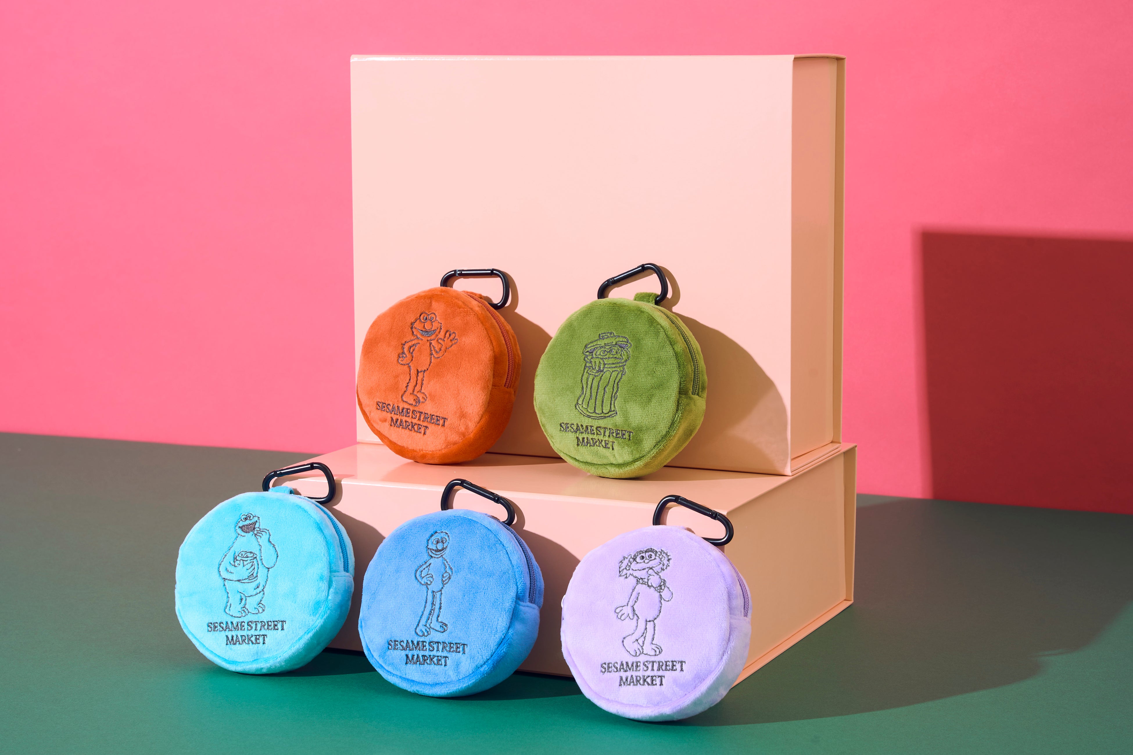 (左上より時計回り:レッド(エルモ)、グリーン(オスカー)、パープル(ゾーイ)、ネイビー(グローバー)、ライトブルー(クッキーモンスター))