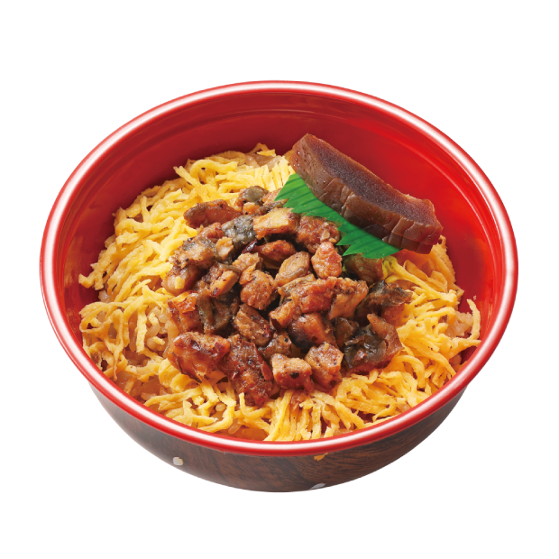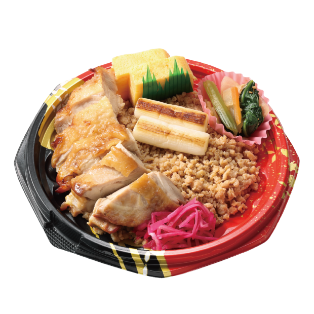 鶏の炙り焼きに鶏そぼろを組み合わせた鶏づくしの丼です。