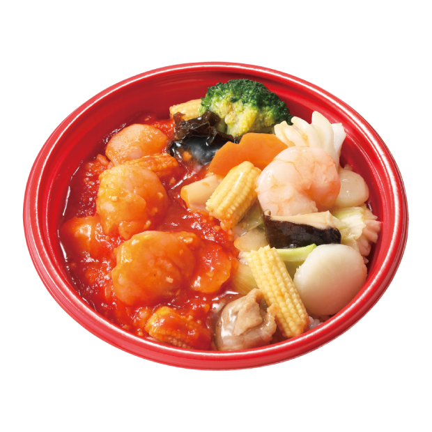 人気のそう菜、エビチリと八宝菜が一度に味わえる贅沢丼。