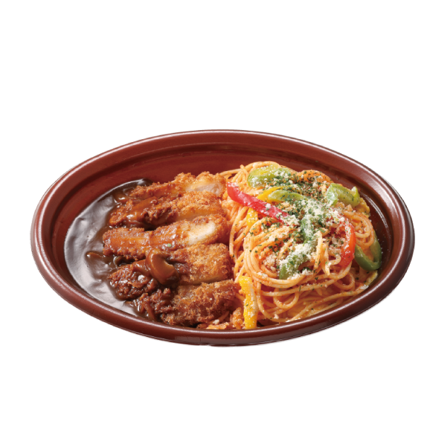 スパゲッティ×カツの洋食コンビ。長崎のカフェめしとしても人気の味。