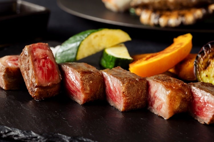 上質な味わいを醸し出す銘柄牛「広島牛」を目の前でシェフが焼き上げるフルコースです。また、前菜にはさっぱりとした味わいの「広島レモン」風味の彩り野菜サラダを提供します。シェフの手さばきや景色とともに、五感で堪能ください。