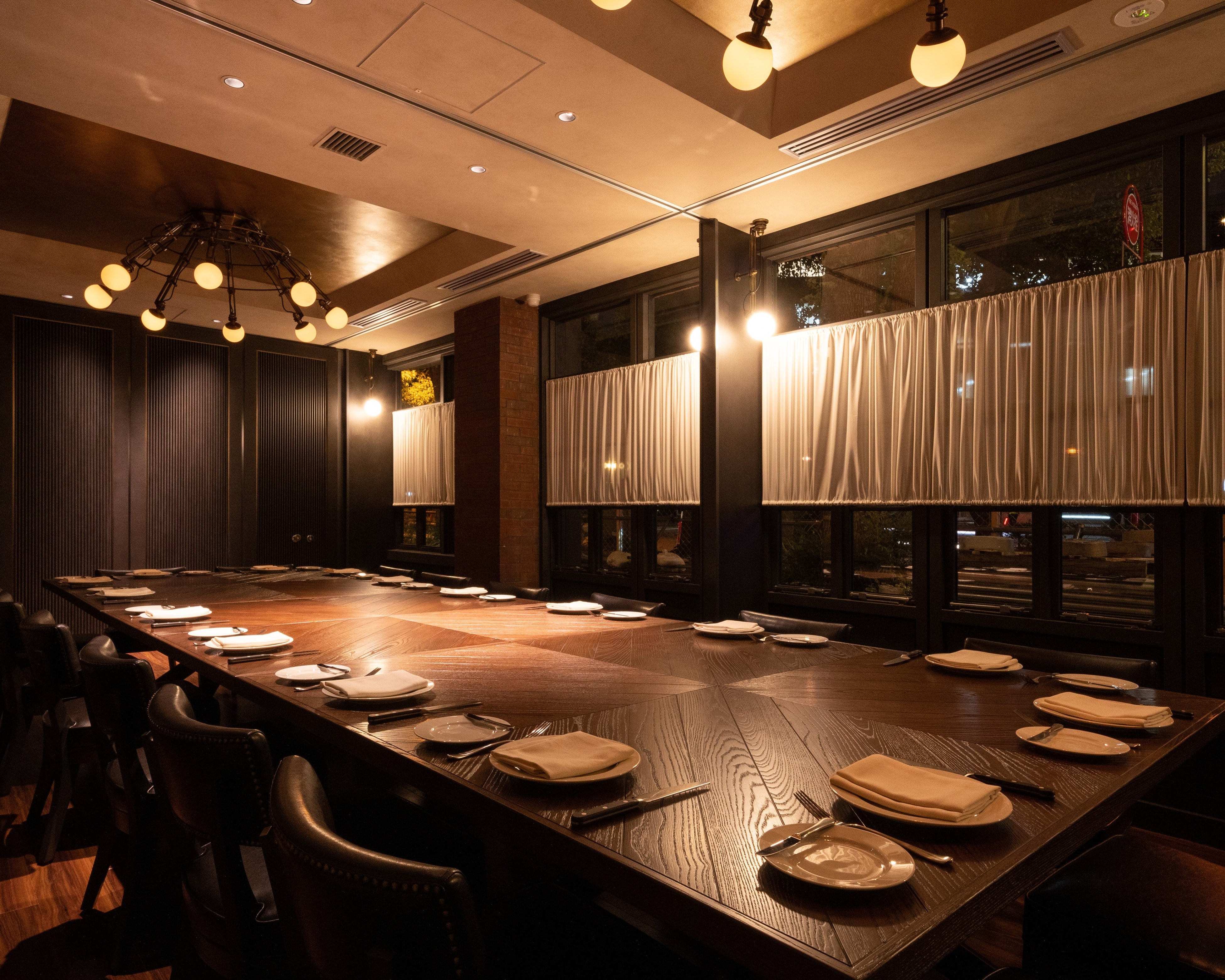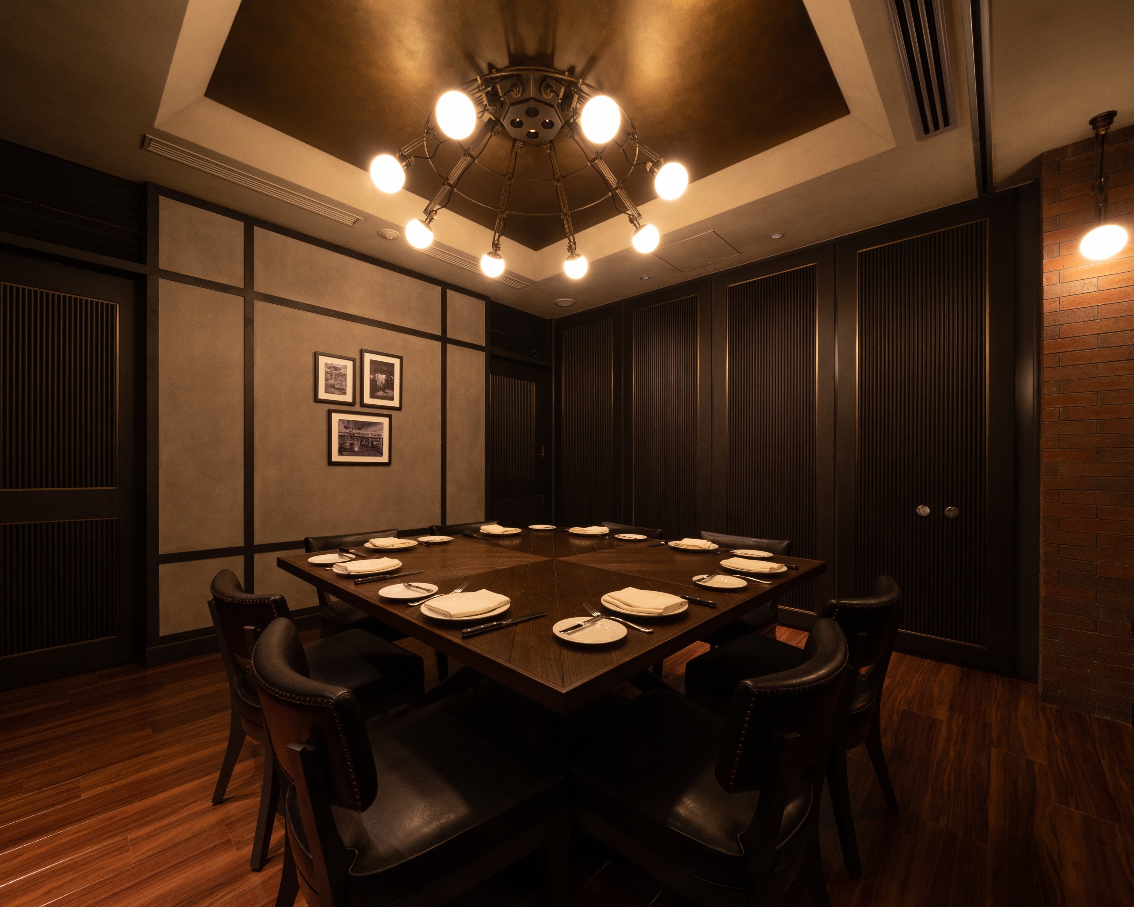 重厚感のあるインテリアと温かみのある照明が織りなす上質な空間で、名門ステーキハウスならではの極上ステーキと厳選ワインを心ゆくまでお楽しみいただけます。人数やご予算、ご希望のスタイルに合わせて柔軟にご提案いたしますので、どうぞお気軽にご相談ください。なお、個室のご利用は1部屋につき最低利用料金10万円(お食事とお飲み物の総額)を設定しております。大切な方との会食や記念日、接待など、かけがえのない時間をぜひこの特別な空間でお過ごしください。