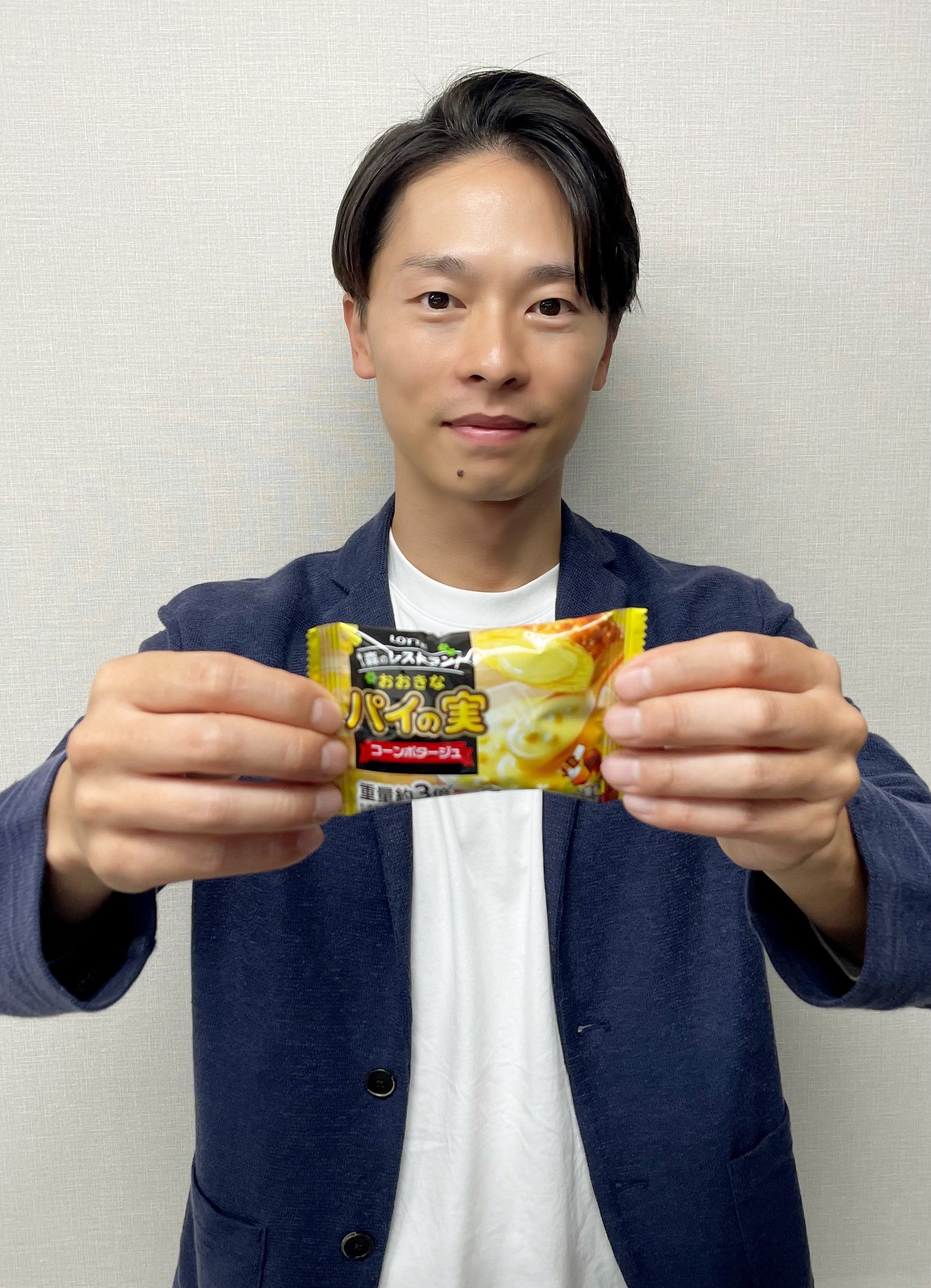 そこで、ブランドの新しい挑戦として“パイを主役にした味わい”を突き詰め、たどり着いたのがコーンポタージュ味です。試作段階から、香ばしい128層のパイとコーンポタージュ風味のうま味が想像以上に相性が良く、社内でも「これは軽食シーンにハマる!」と好評でした。通常の重量の約3倍のボリュームで仕上げているので、1つでもしっかり満足感を得られます。食事と間食がボーダーレス化してきている今の時代だからこそ、“おやつでも食事でもないちょうどいい存在”として、新しいパイの実を提案できることをとてもうれしく思っています。ぜひ皆さんの日常の小腹満たしに取り入れていただけたらうれしいです。