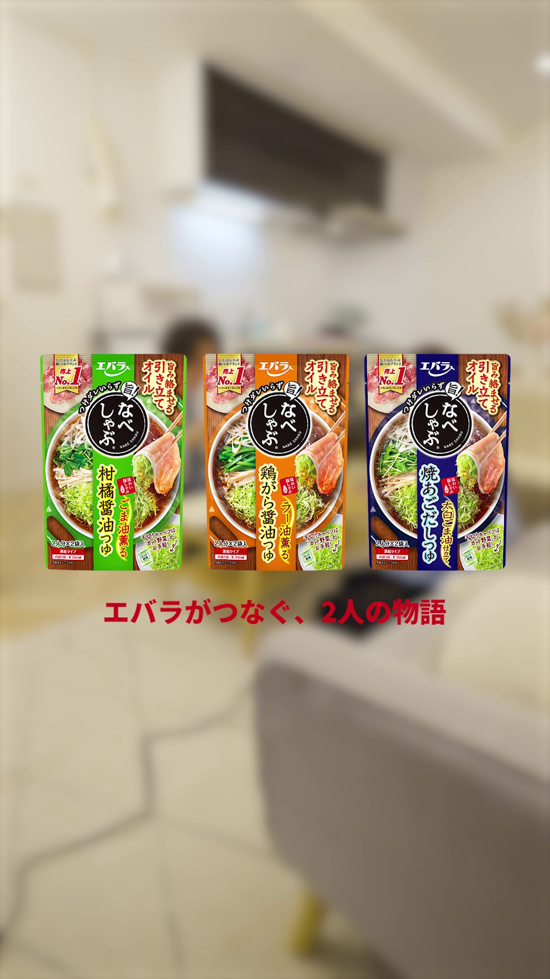 本動画は、男女2人の「付き合う前、付き合った後、プロポーズ、結婚生活」のライフステージの変化が全4篇にわたって描かれており、そのなかで当社商品が各エピソードに登場します。『エバラがつなぐ、2人の物語』のタイトル通り、「なべしゃぶ」や「黄金の味」などの当社商品で囲む食卓をきっかけに揺れ動く2人の関係性やストーリーにご注目ください。