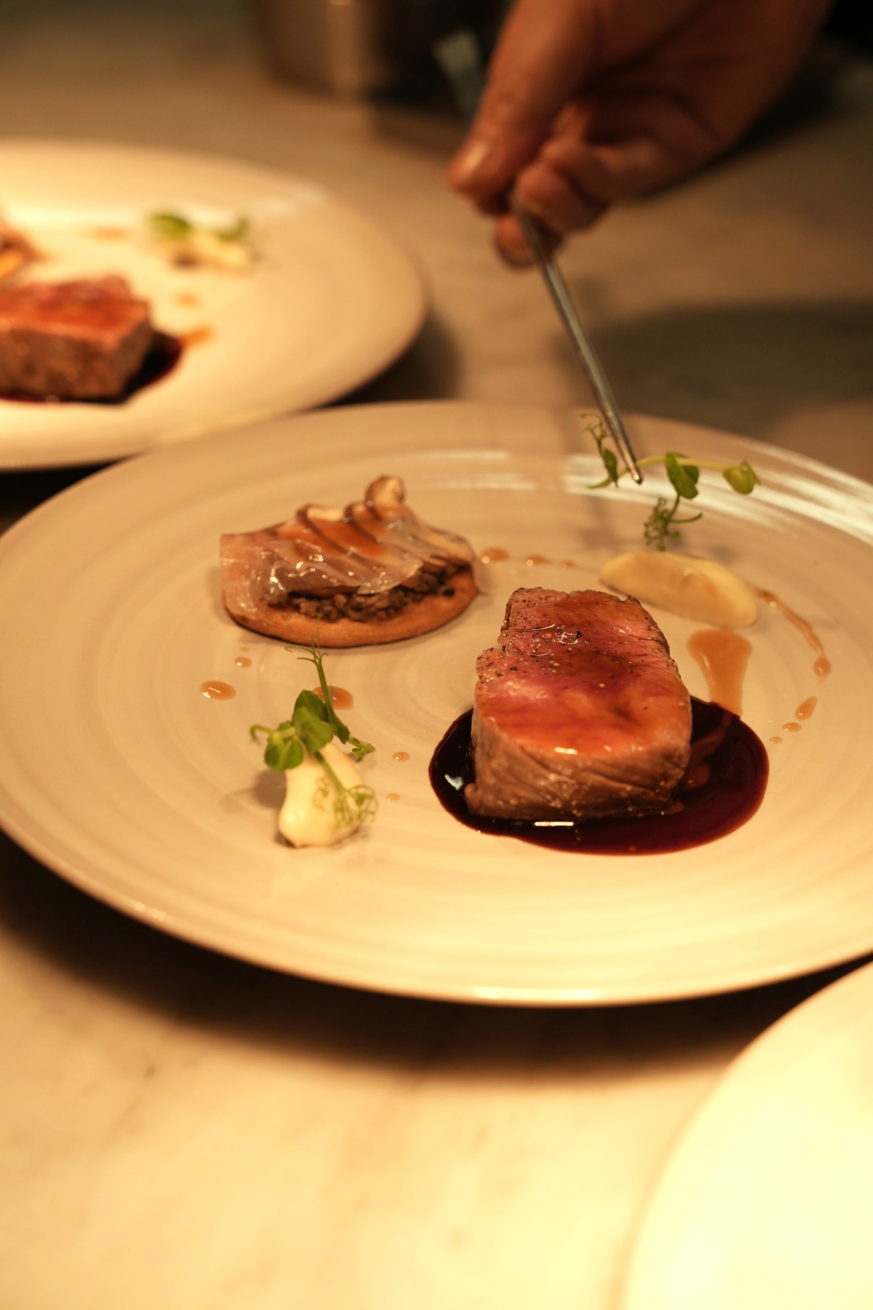 〇蝦夷鹿ロース肉のローストロワイヤル風 又は 和牛フィレ肉とフォアグラのポアレ ロッシーニ風(+¥2,000)