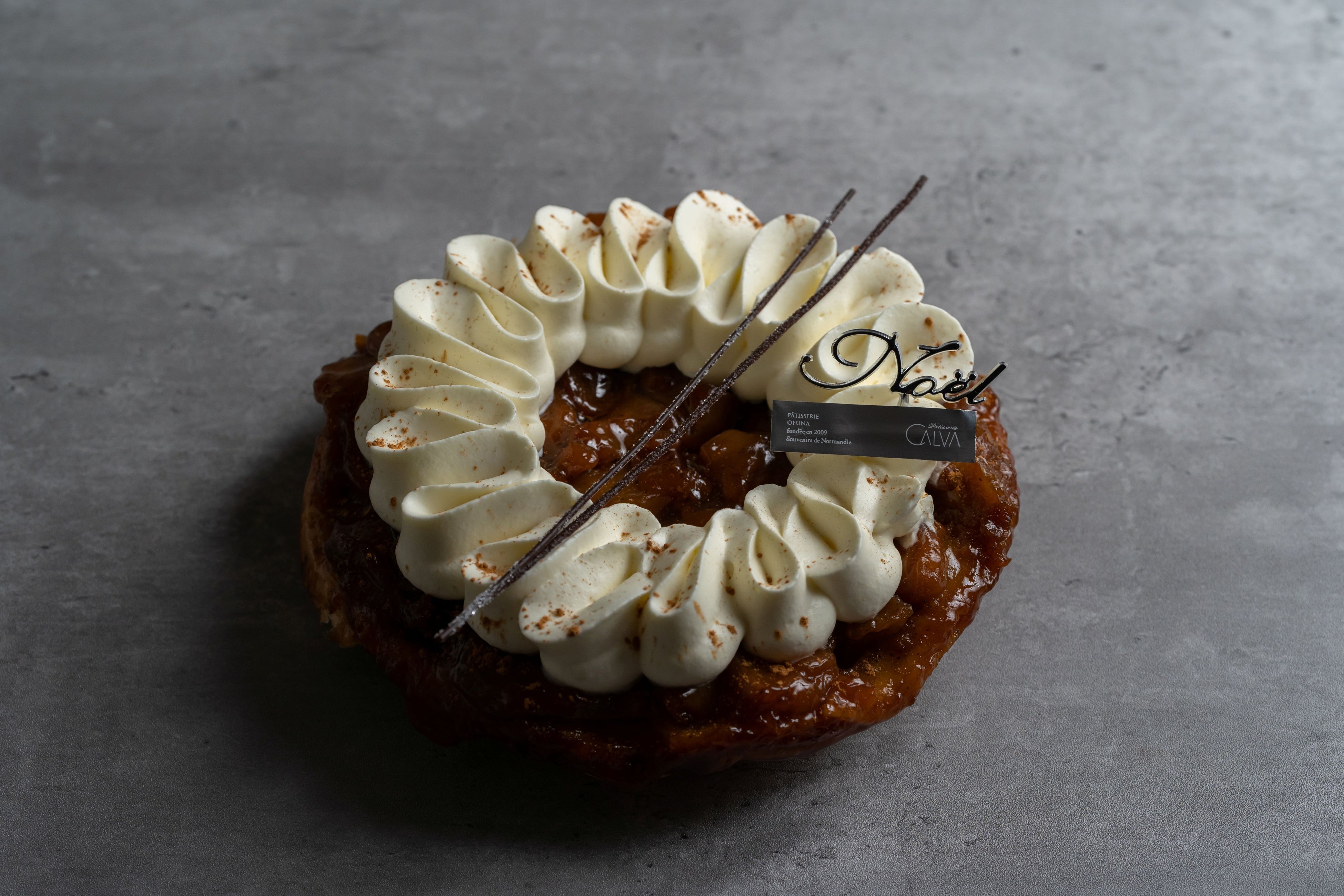 オープン当初から独自の製法で毎朝焼きあげる人気のタルトタタン。じっくりキャラメリゼしたリンゴは香ばしくとろっとした食感。シナモン香る生クリームとともに。