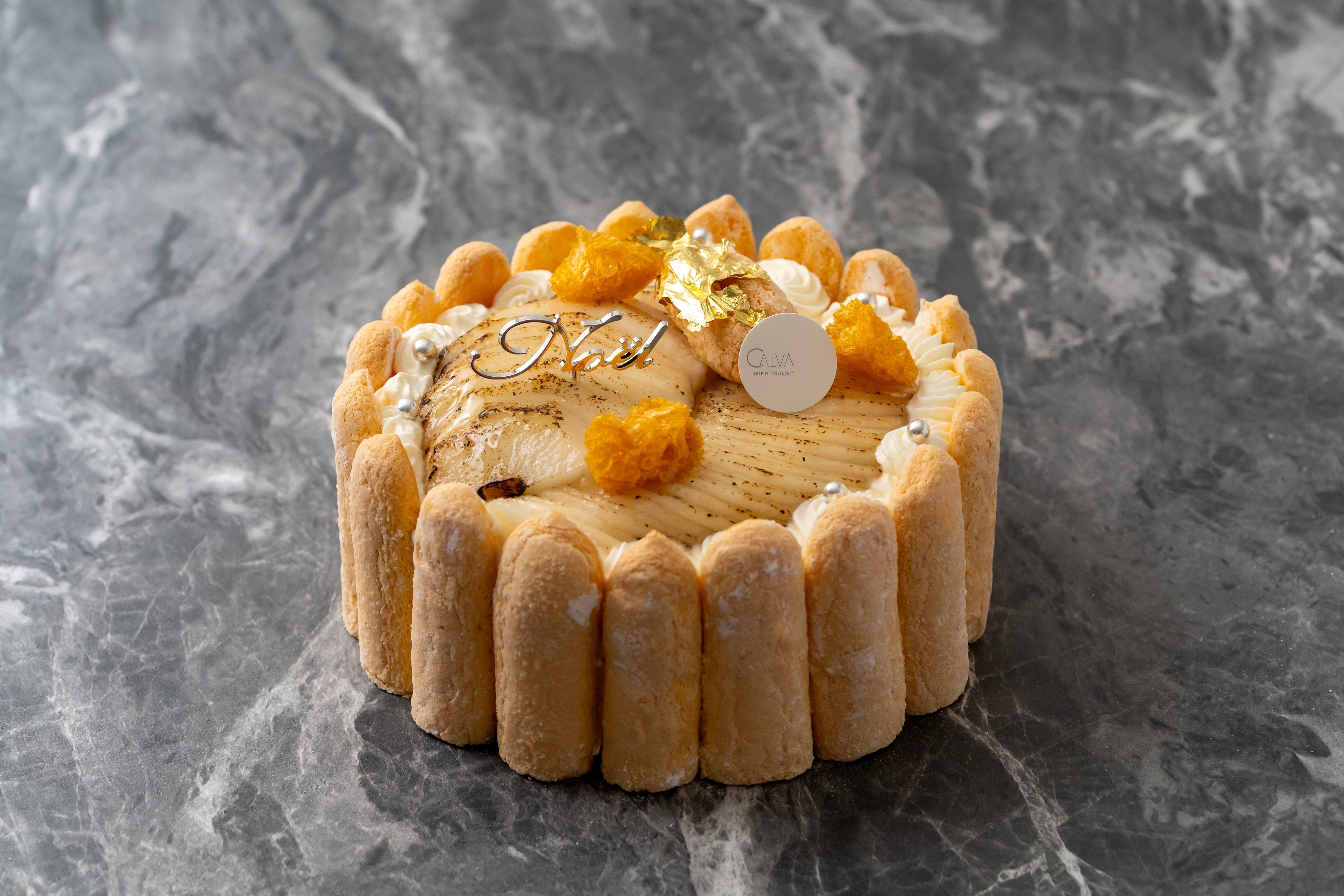 西洋花梨と洋梨を合わせた軽やかなムースに、アプリコットの酸味を忍ばせたシャルロット。フレッシュな洋梨を贅沢に飾り、果実の香りがダイレクトに広がります。