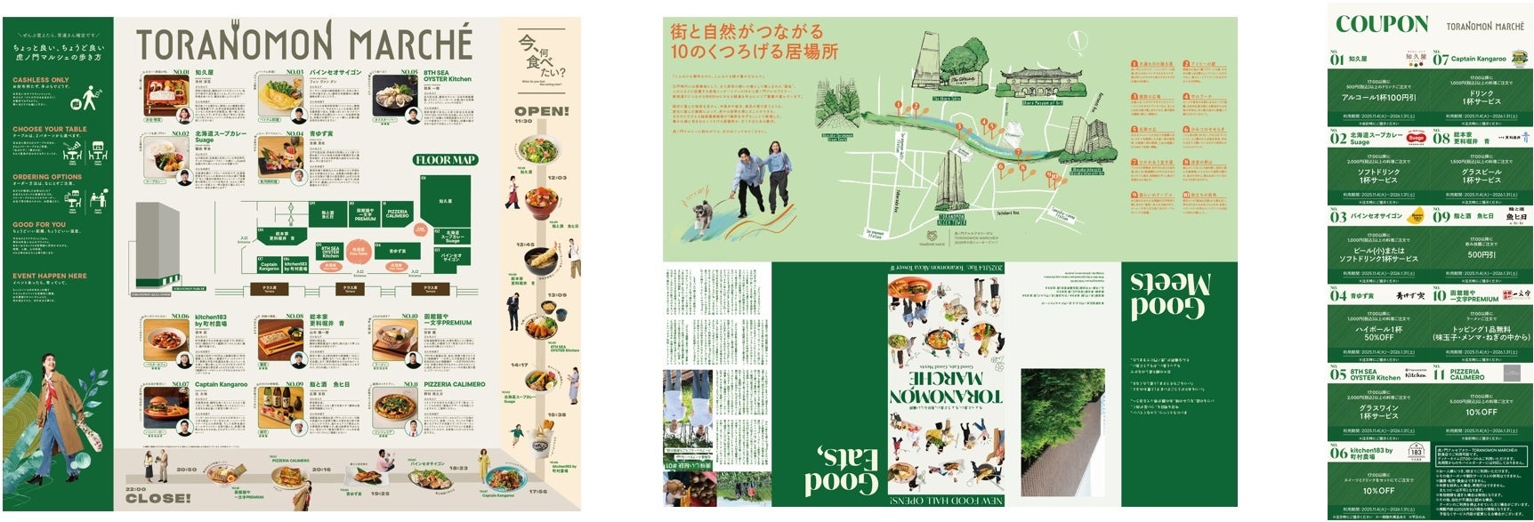 また、訪れるお客さまや地域住民・ワーカーの方に、虎ノ門・赤坂エリアの街の魅力も一緒にお楽しみいただけるよう、赤坂・虎ノ門緑道を中心としたエリアマップ、各店舗・スタッフ紹介、産地の取材記事など、食と人とのつながりを多角的に発信するフロアガイドを発行します。併せて各店舗の個性を反映したお得なクーポンも配布します。