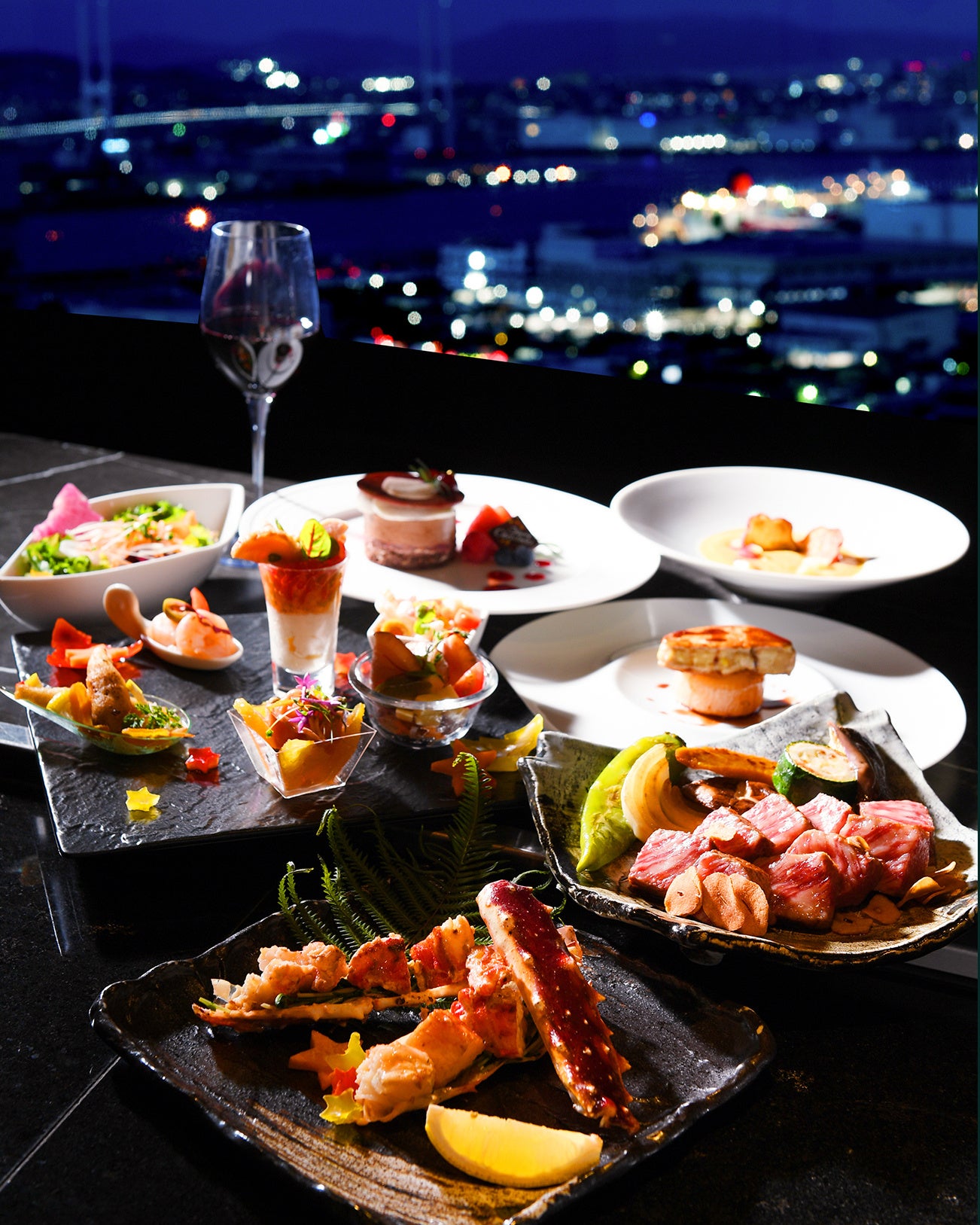 港町・神戸の夜景を望むフレンチレストラン「スマイリーネプチューン」と、目の前で繰り広げられる、五感を刺激する臨場感が魅力の「和風 鉄板焼 潮路」。趣の異なる2つのレストランからお好みのスタイルを選び、心ときめく聖夜のひとときをお過ごしいただけます。