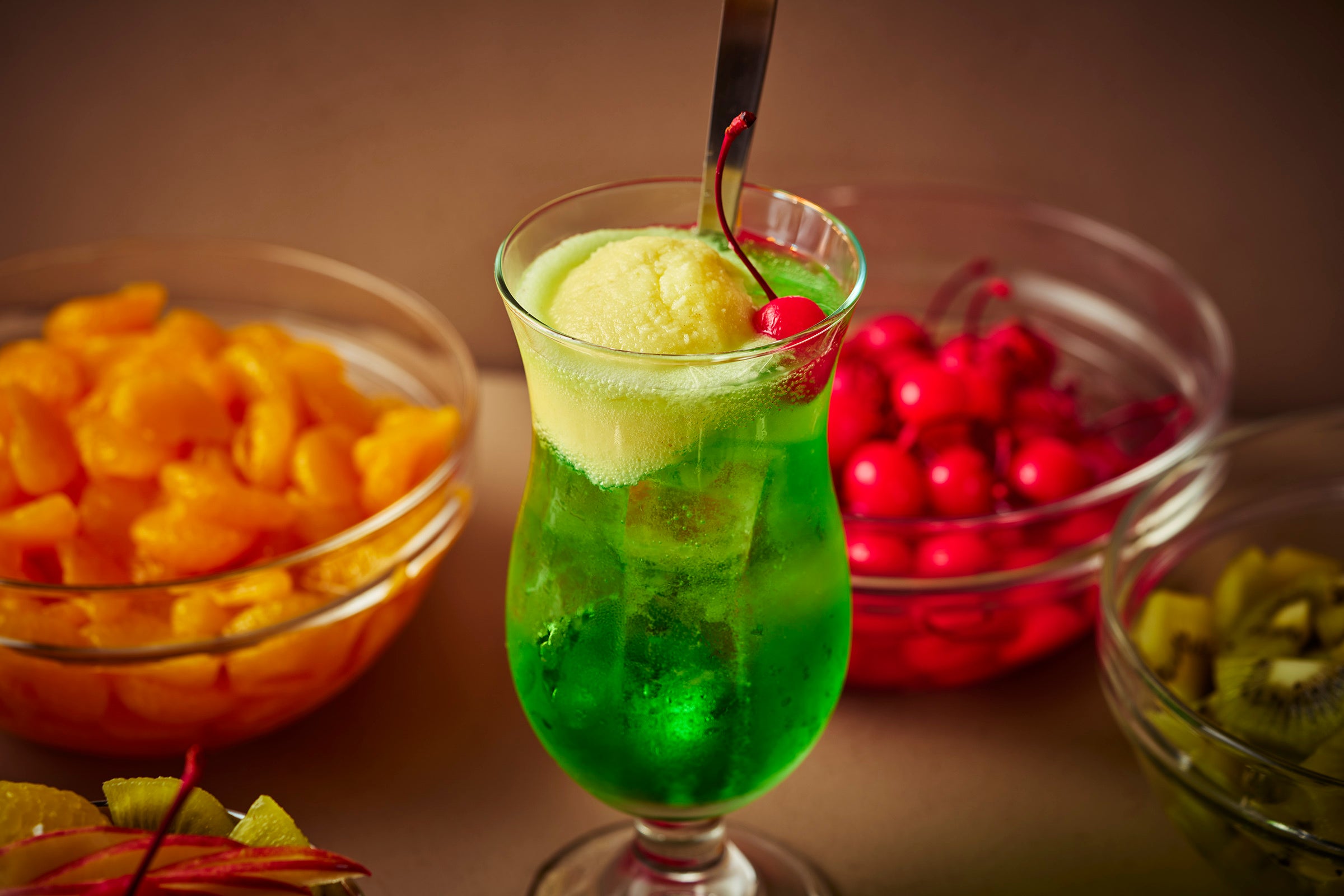 鮮やかなメロンソーダに、まろやかなバニラアイスと真っ赤なさくらんぼを浮かべた、昭和を代表するレトロドリンク。懐かしさの中に、思わず写真を撮りたくなるような華やかさも。食後のひとときにもぴったりな、ノスタルジックな一杯です。
