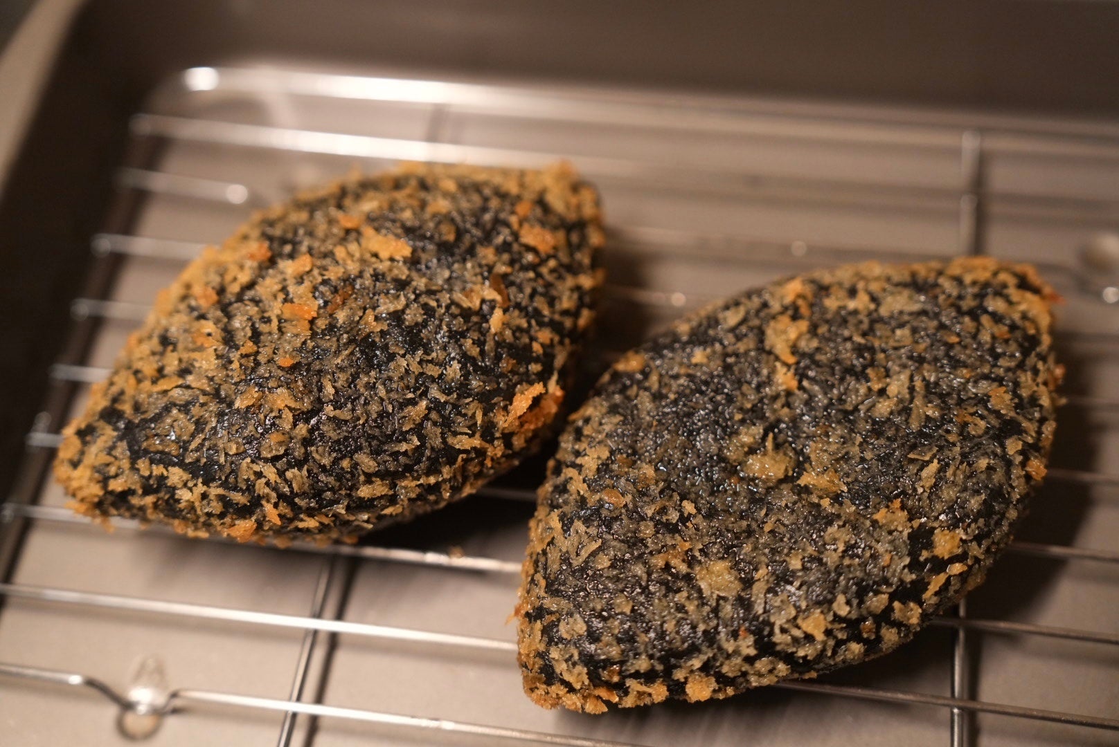 電信レンジ500w2分で解凍してから、170℃の油で片面1分半ずつ揚げることで自宅でも手軽に出来立ての美味しさを楽しめます。