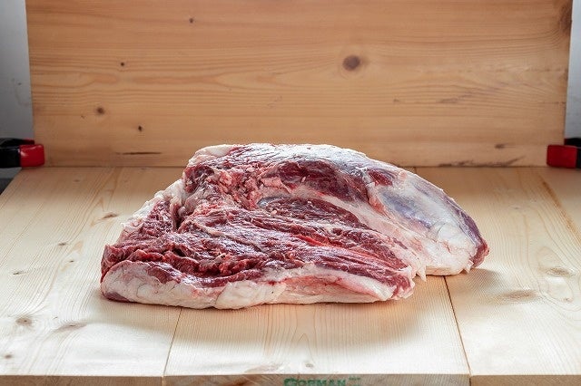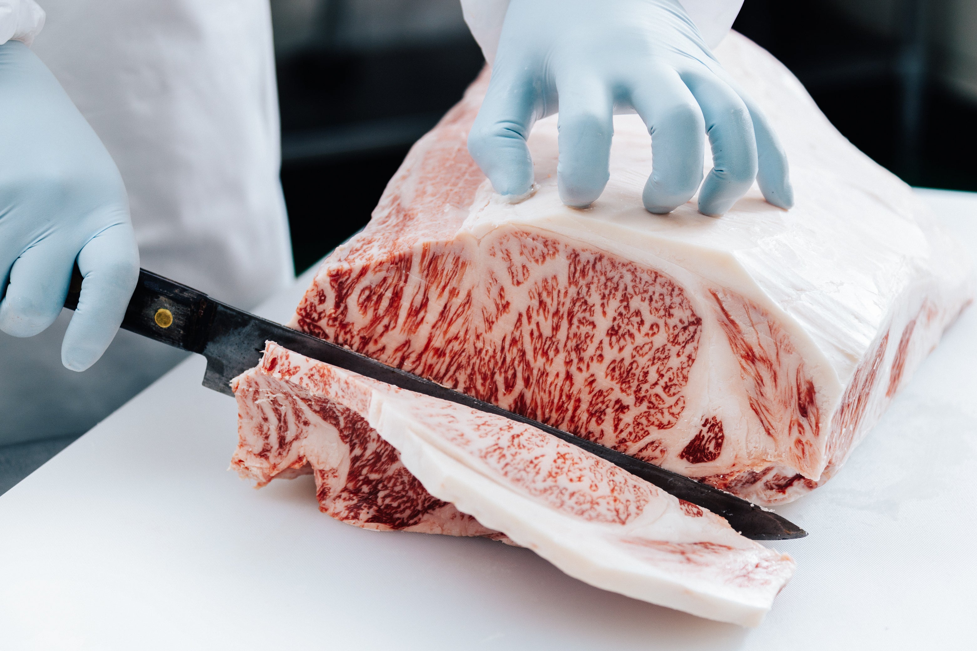 福島牛の脂の霜降りは、霜のように細かい網目状の模様が肉全体に広がっています。