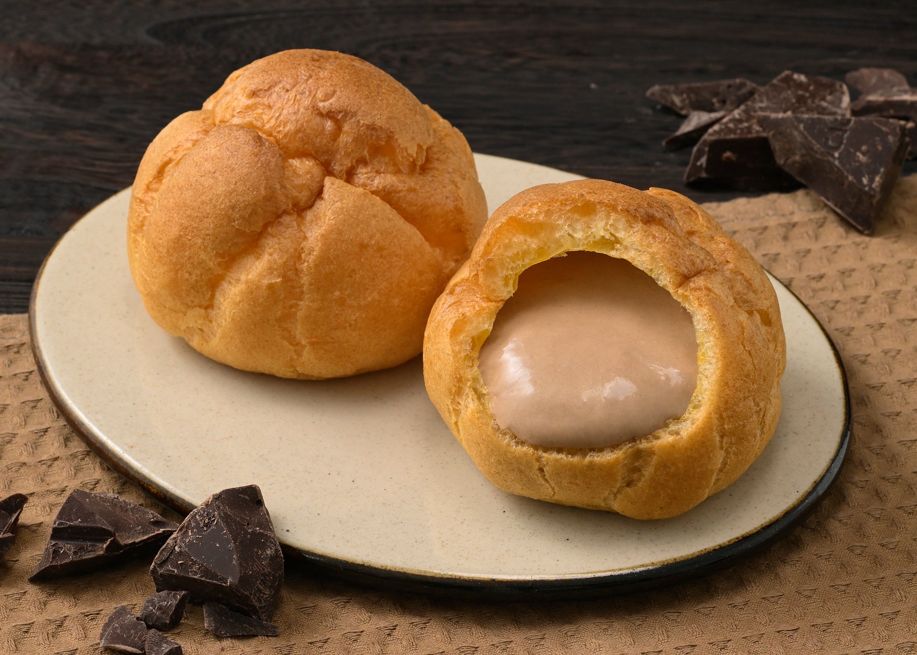 特長:ミルクとビター2種のチョコレートをブレンドして深みのある味わいに仕上げたチョコカスタードを、歯切れと口どけのよいシュー皮に詰めました。チョコレートの華やかな香りと力強いカカオ感をお楽しみください。