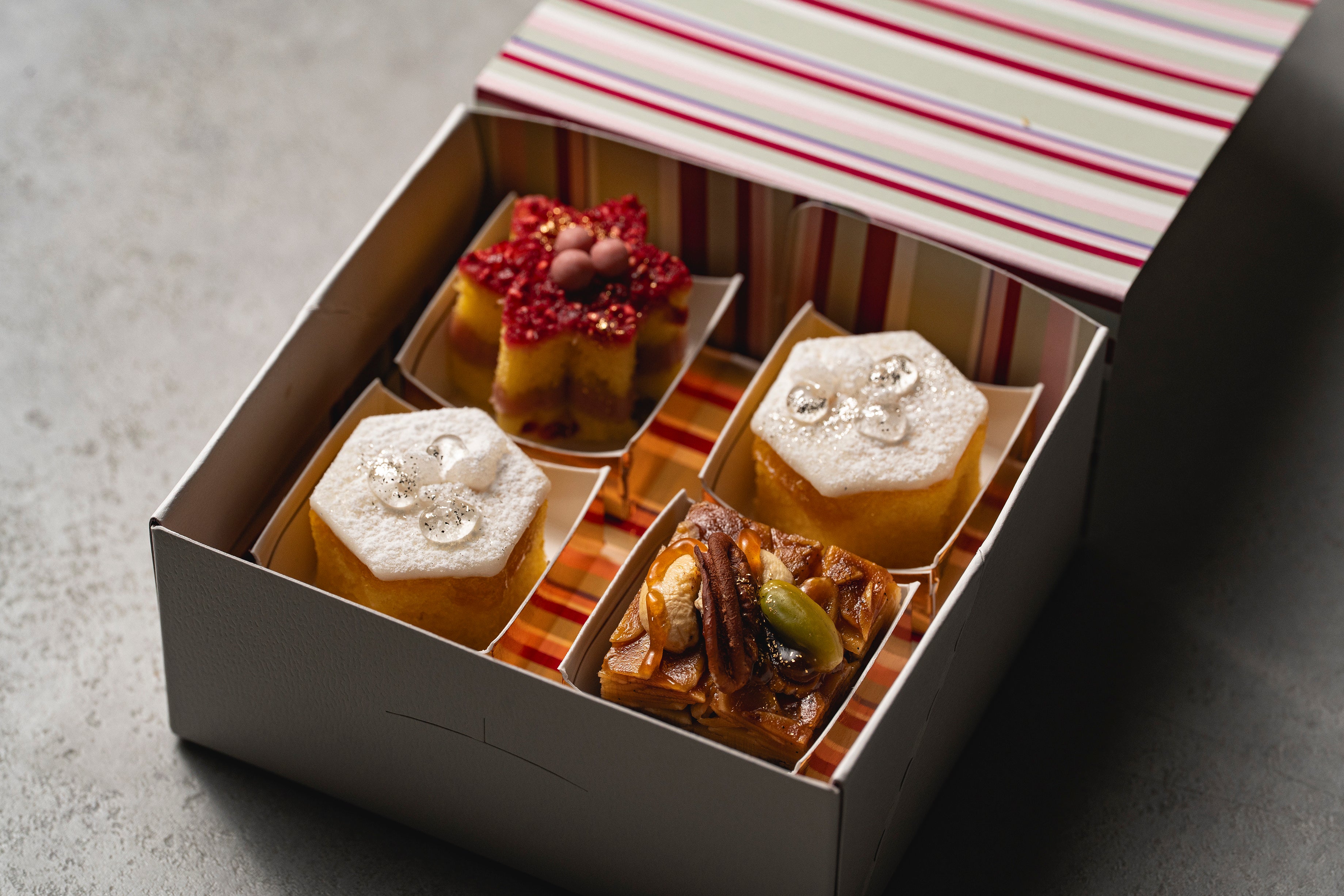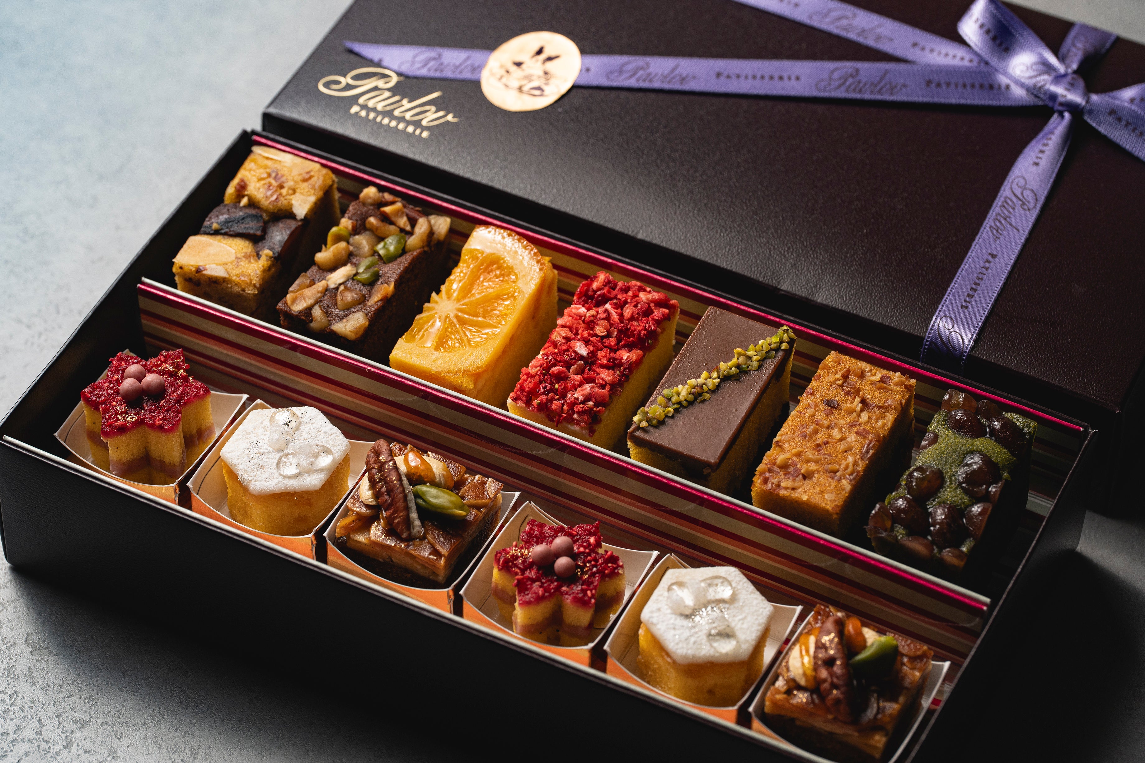 人気のオリジナルアソートに、冬限定のプティフールが加わった繊細な飾りがパブロフらしいセットです。粉雪をイメージした、ゆずのパウンドケーキとフリュイルージュのガナッシュをサンドした華やかなポインセチアのパウンドケーキ、重なる落ち葉をイメージした濃厚なキャラメルとぎっしりナッツのパウンドケーキの3種が新登場。お持たせにもぴったりな13個入と19個入のギフトBOXは定番人気のオリジナルパウンドケーキアソート(マロン/チョコレート/オレンジ/バニラフレーズ/ピスタチオショコラ/キャラメルフィグ/抹茶)とセットになっています。心ときめく季節にぴったりの、特別なひと箱です。