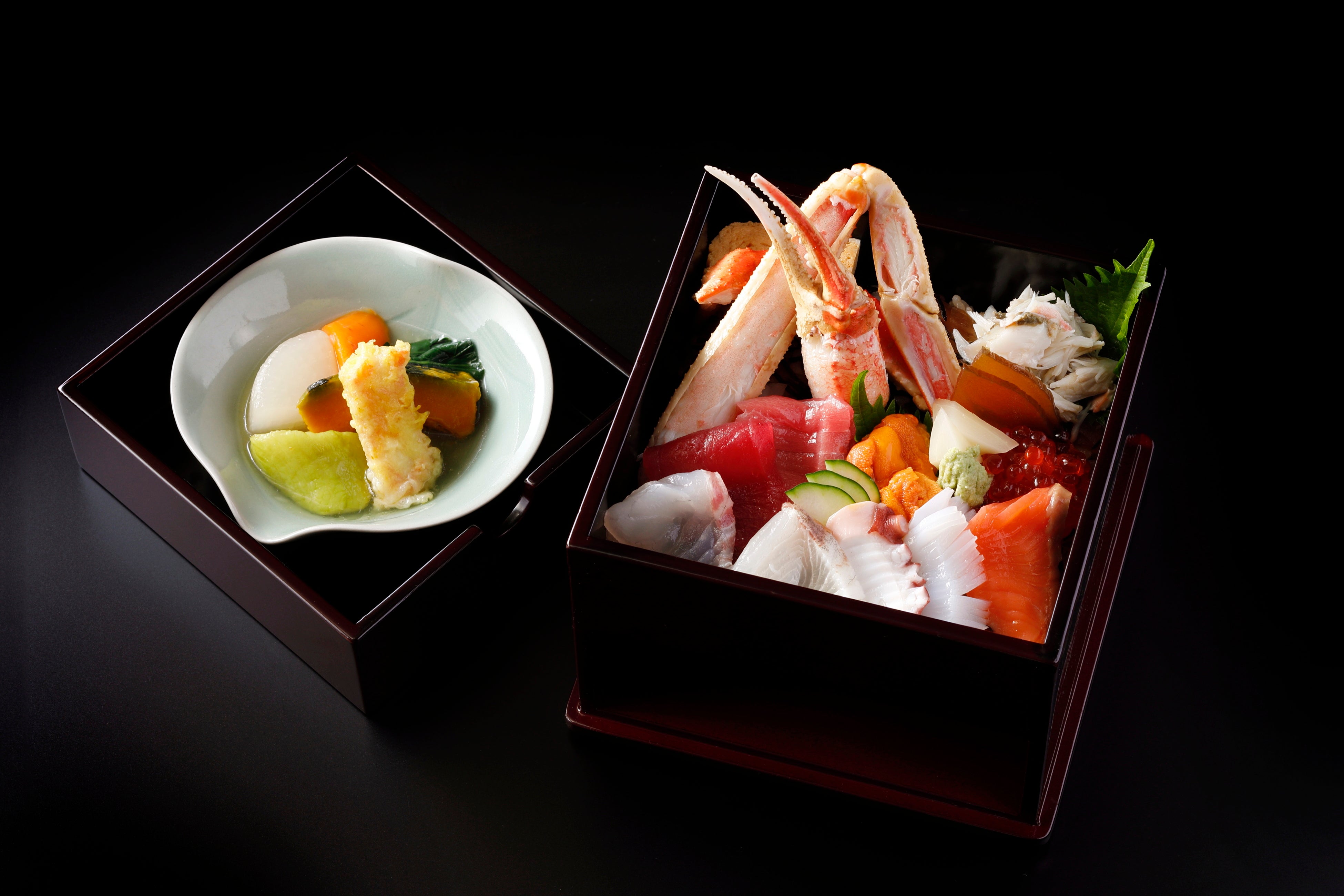 お食い初めや七五三、お顔合わせやご結納など、さまざまなハレの日を料理長 安西雄大の心を込めた料理でおもてなしする、料亭「千羽鶴」。日本料理の真髄が光る空間で、最高級の「松葉がに」を会席でご堪能いただけます。「松葉がに」と一緒に愉しめるのは、同じく旬を迎える天然本鮪。食通を唸らせる、究極の贅沢を提供します。