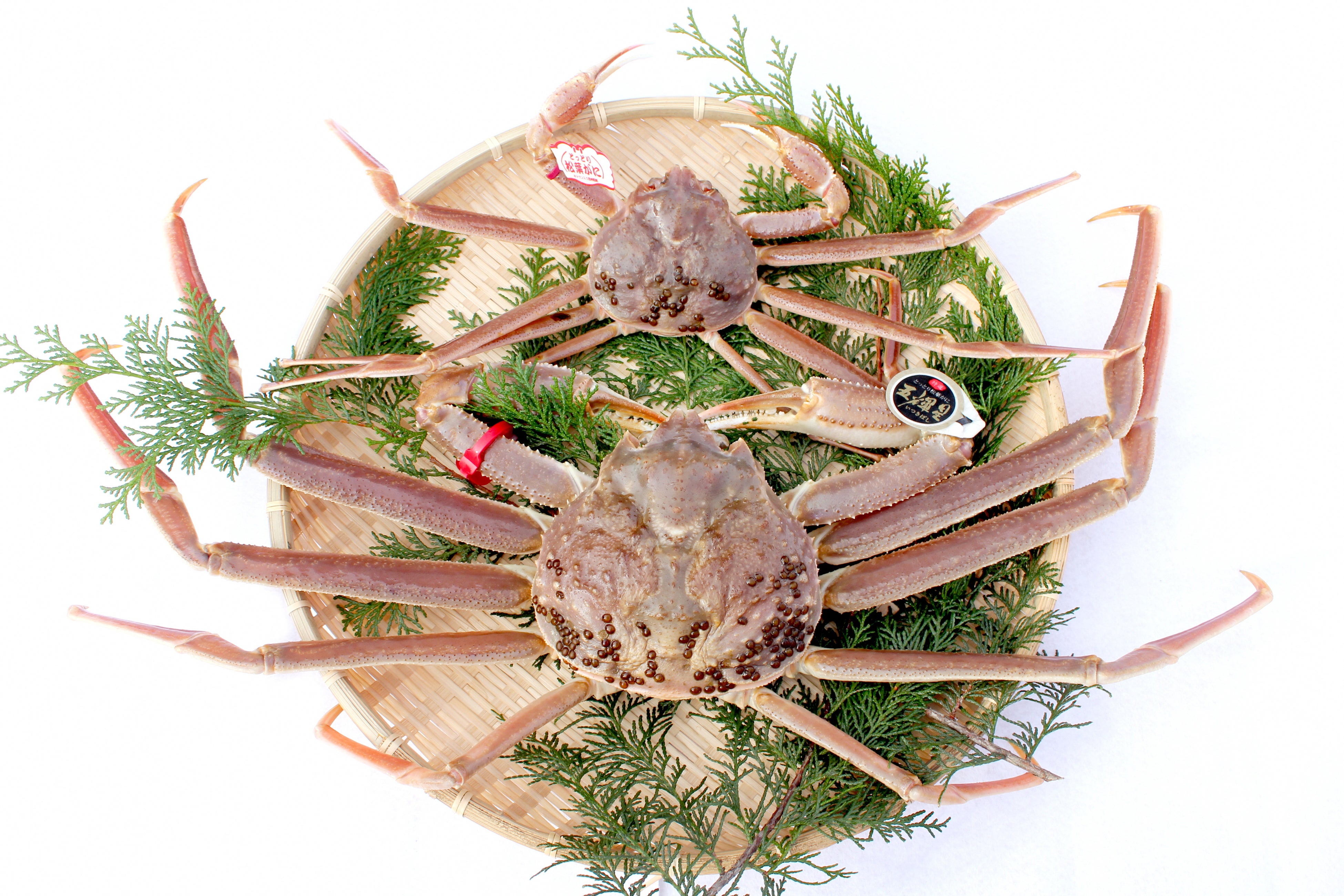 鳥取県で水揚げされる「松葉がに」は、成長した雄のズワイガニのことで「冬の味覚の王様」と評される鳥取県のブランドガニです。最大の魅力は、殻にびっしりと詰まった身の弾力と、口の中に広がる上品で濃厚な甘み。特に、甲羅幅11cm以上の大型で身入りの良いものには、産地と品質を証明する「ブランドタグ」が付けられ、市場に出荷されます。また、2015年には松葉がにのトップブランド、特撰鳥取松葉がに「五輝星(いつきぼし)」が誕生。大きさや重量など厳格な基準を満たした、まさに“王様の中の王様”です。