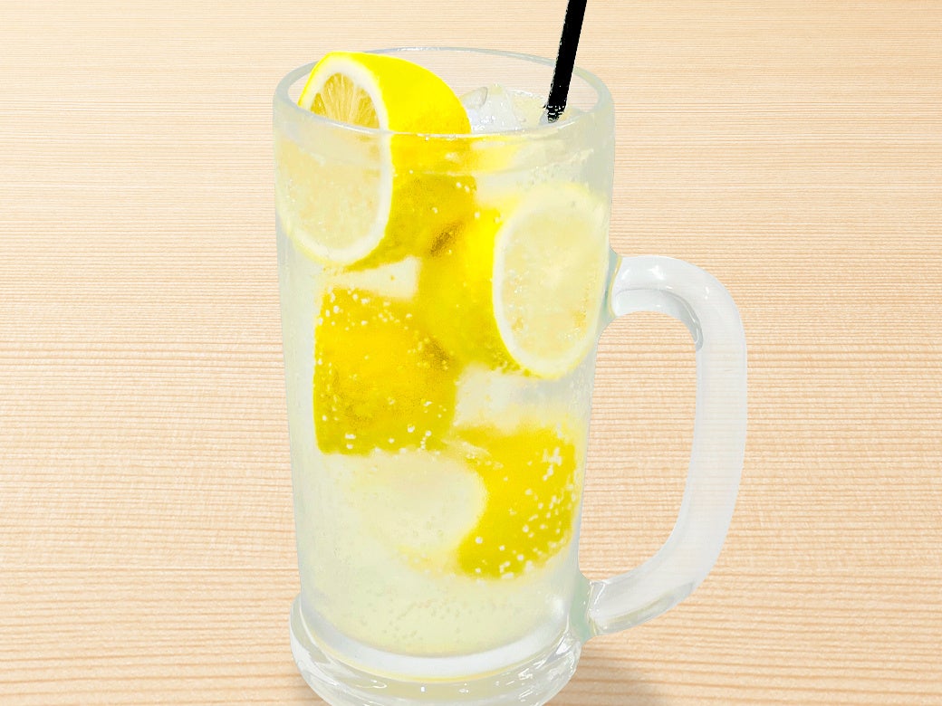1リットルサイズのメガジョッキに丸ごとレモンが2個分入った