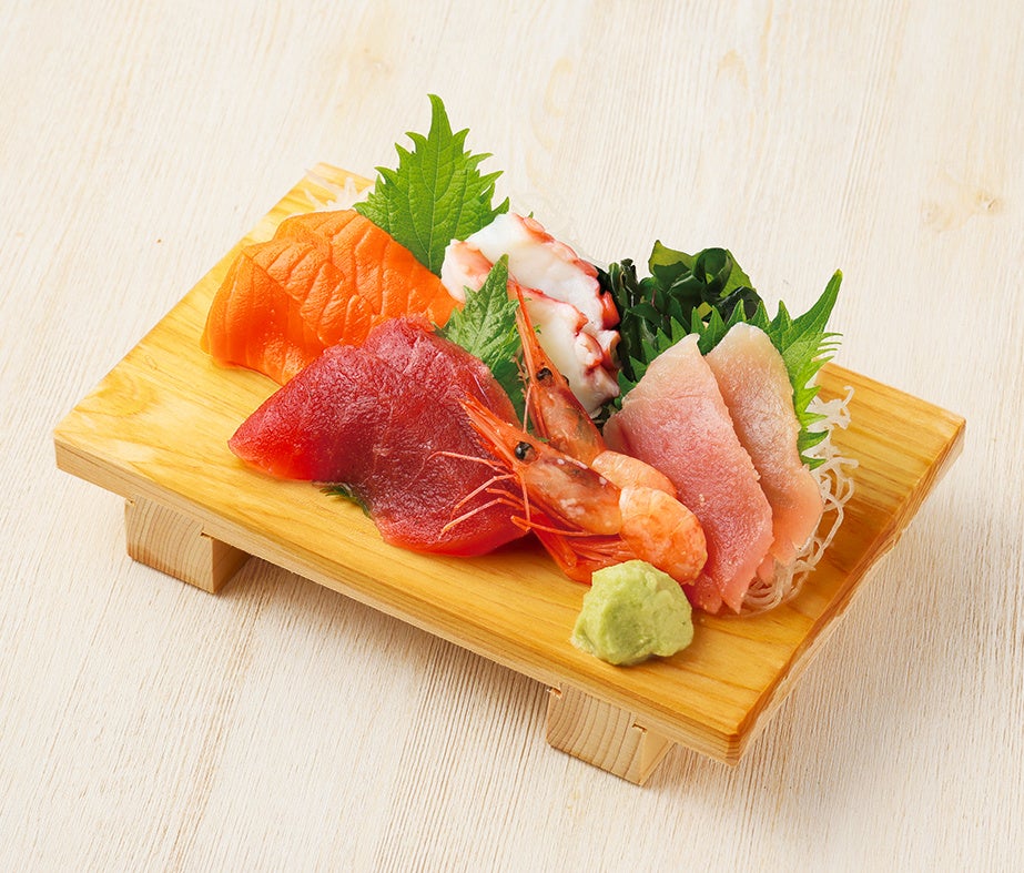 カツオの塩たたき・まぐろ赤身・びんちょうまぐろ・トラウトサーモン・たこ