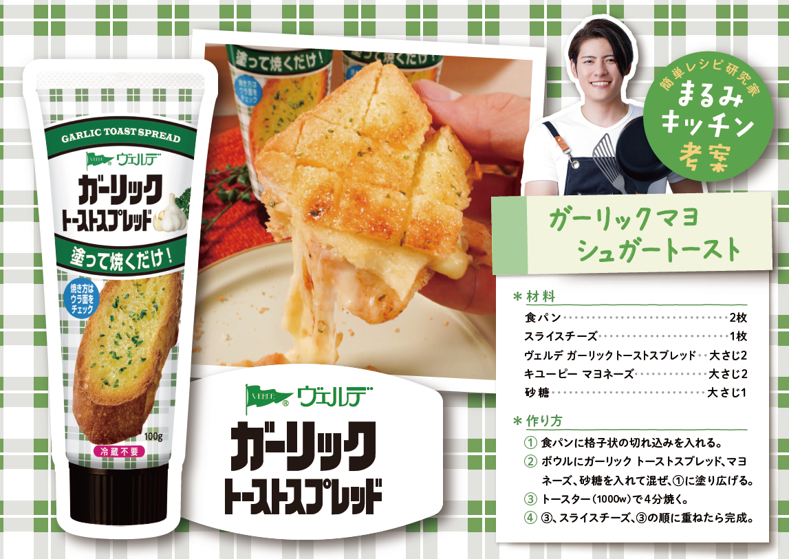 アヲハタ株式会社(本社:広島県竹原市、代表取締役社長:上田敏哉、以下アヲハタ)は、2025年11月10日(月)から11月25日(火)正午まで、パンに塗って焼くだけで手軽に本格的なトーストメニューが楽しめる「ヴェルデ トーストスプレッド」全7種セットが当たるキャンペーンをアヲハタX公式アカウント(@aohata_official)で実施します。簡単レシピ研究家のまるみキッチンさんが考案した、「ガーリックマヨシュガートースト」「チーズシュガートースト」は、食欲の秋にぴったりな誘惑のトーストメニューです。どちらか食べたいトーストを選んで、ぜひご参加ください。