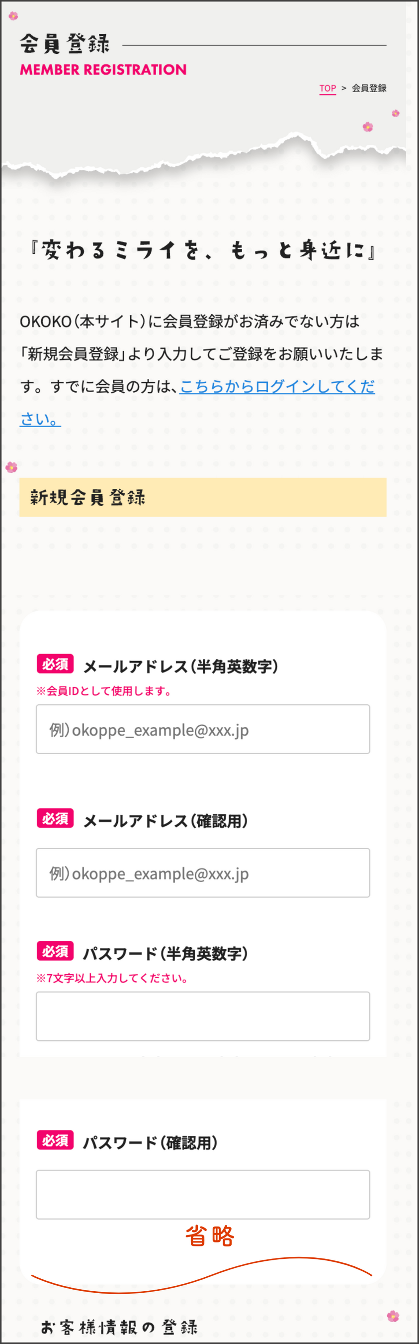 「ログイン情報」と「お客様情報」をご入力いただきます。