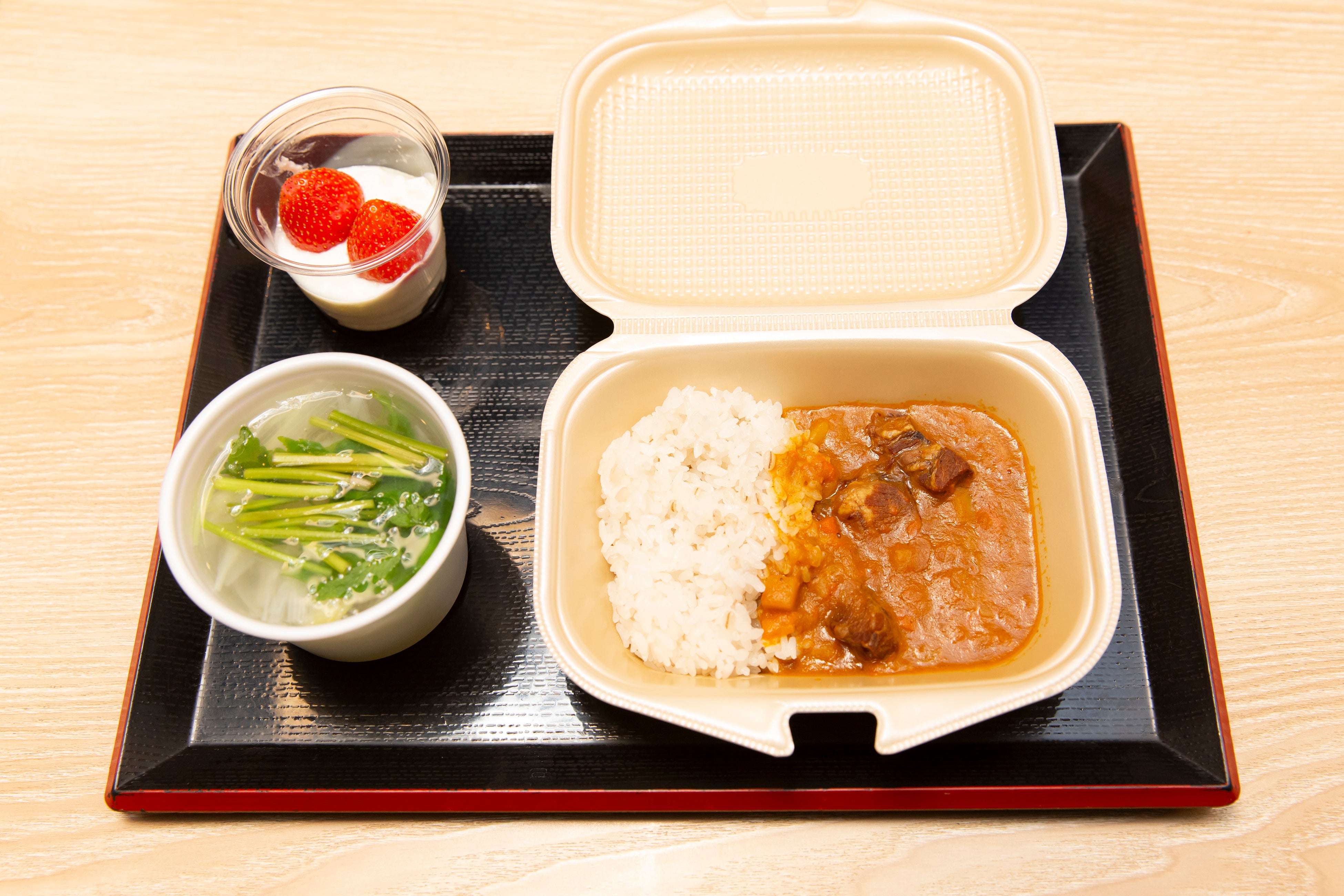 (牛たんカレーライス・せり入りテールスープ・いちごヨーグルト)