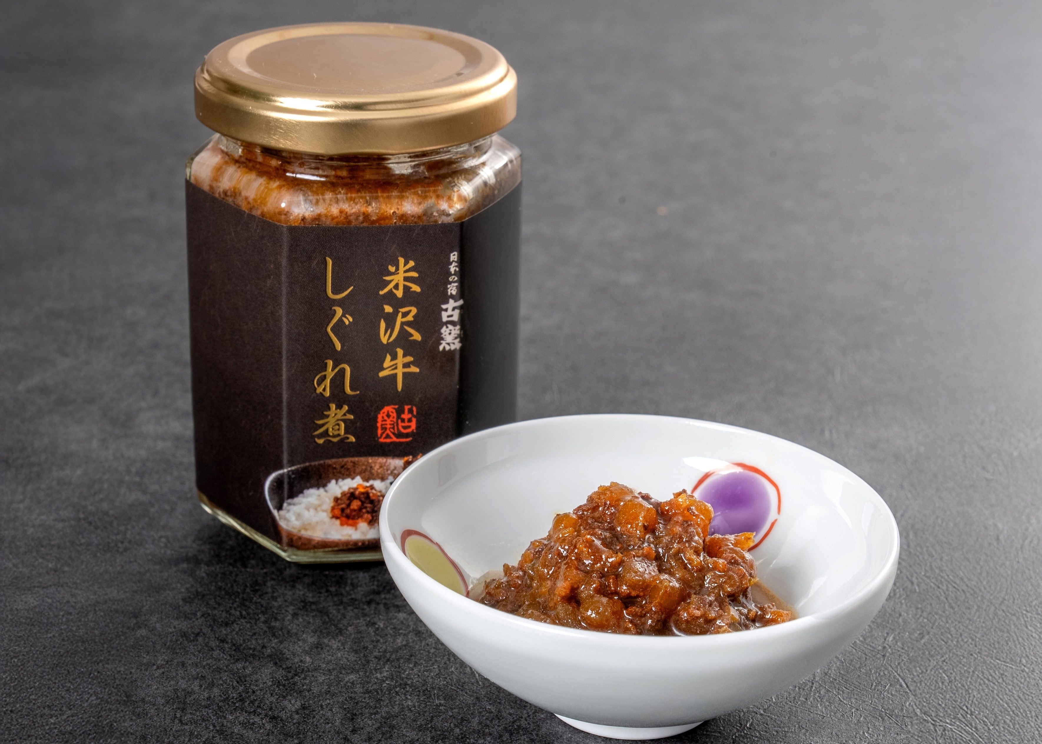 山形のソウルフードである玉蒟蒻を、古窯特製のピリ辛の醤油味で仕上げた玉蒟蒻田舎煮。祭りや観光地など人が集まる場には玉蒟蒻の湯気が立ち上るのが山形なじみの風景です。山形市は蒟蒻の消費量が日本一で、山形市屈指の観光地である立石寺では「力こんにゃく」という名前で親しまれ、それを食べると立石寺の千段以上ある石畳をも登れるような力が湧くといわれています。また、古窯の位置する上山市では、すべての料理が蒟蒻でできた「蒟蒻懐石」も有名です。そんな蒟蒻と縁深い山形ならではの一品です。