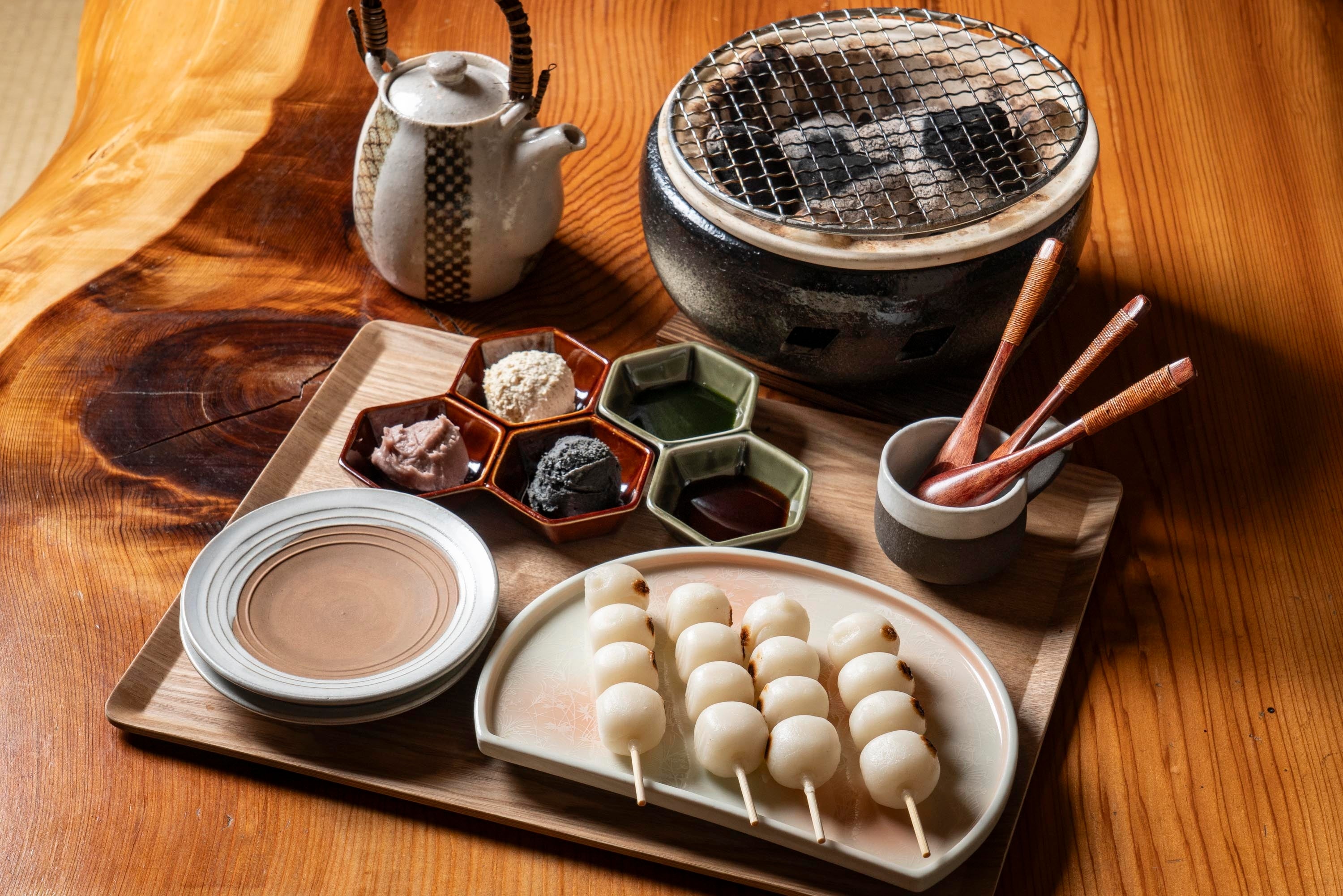 滋養強壮の王者とも呼ばれる自然薯をたっぷり使った御膳料理が、自然薯茶屋の名物です。看板メニューの「自然薯三昧御膳」をはじめ、地元・瀬戸の郷土料理である「いもうどん」や、七輪で焼きながら楽しむ「焼きお団子セット」など、甘味メニューも人気です。体にやさしく、ほっとする味わいを通年で楽しめます。