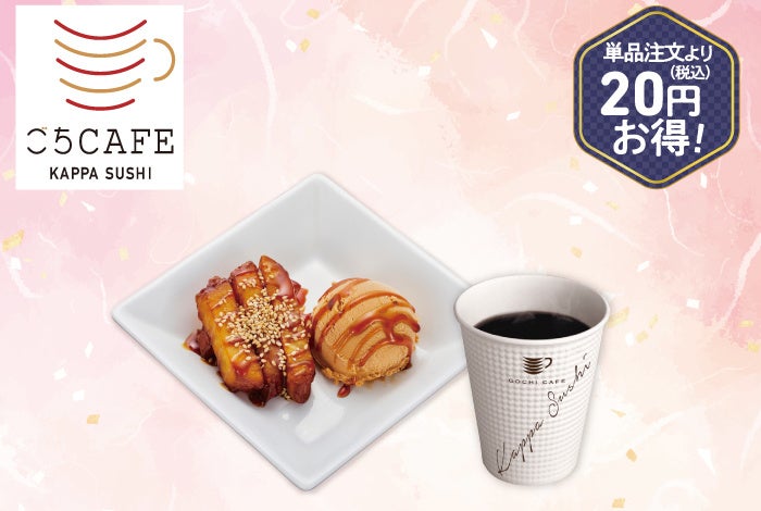 さつまいもの自然な甘みと醬油キャラメルアイスを一緒に楽しめる「蜜おさつと醤油キャラメルアイス」と「ホットコーヒー」をセットにしました。