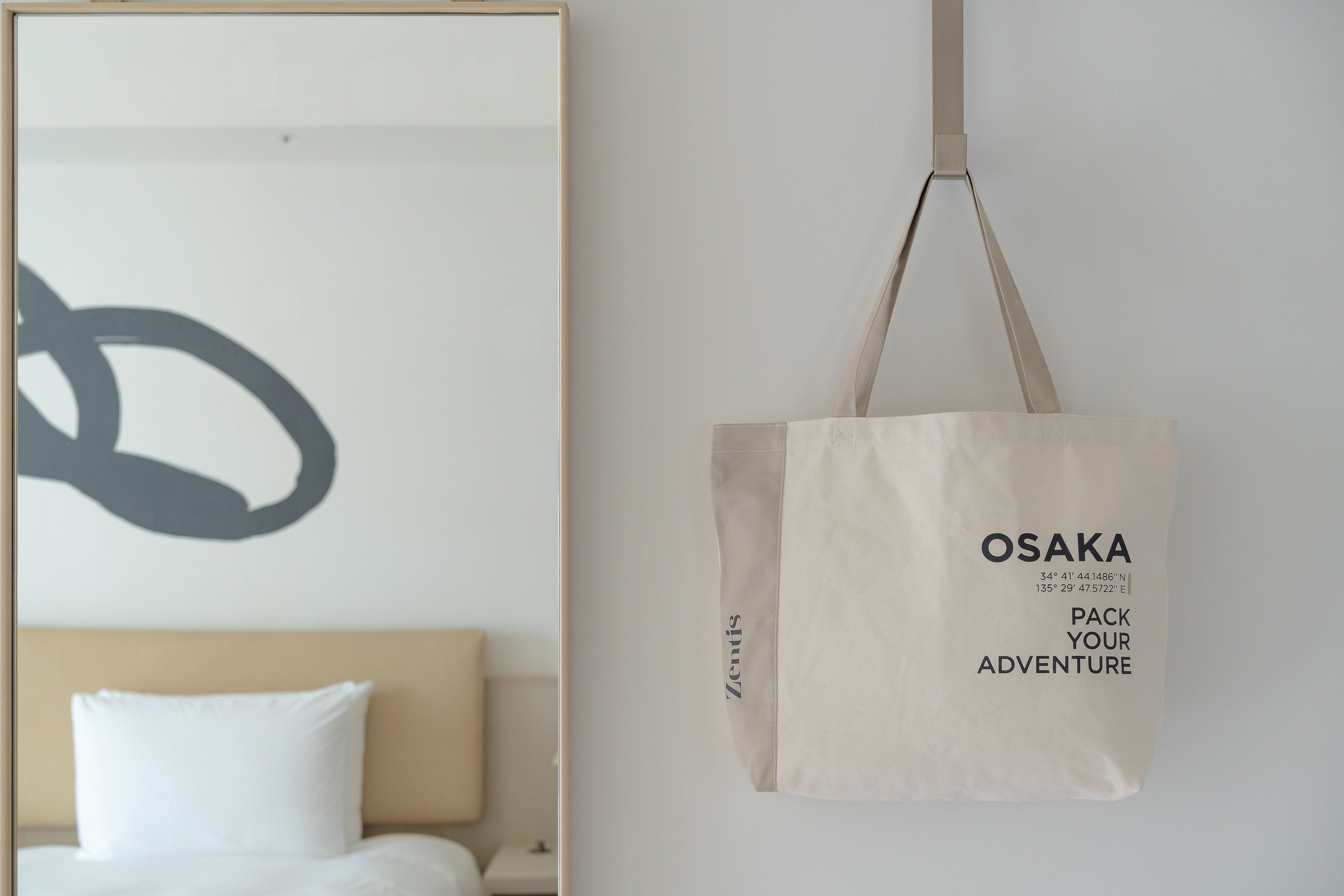 チェックイン時には「大阪で経験した『冒険』をこのバッグに詰め込もう」という想いを込めた、ホテルのオリジナルエコバックをプレゼント。アートや建築の中心地である大阪・中之島エリアの散策にもぴったりです。