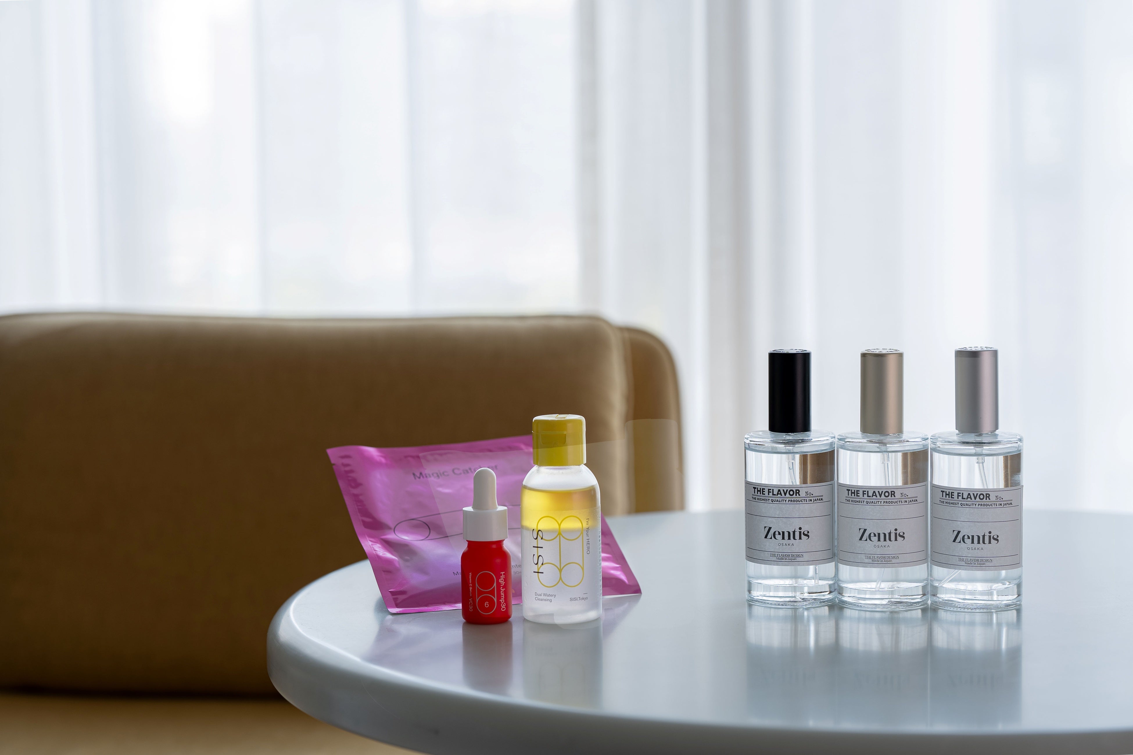 さらに、ホテルステイをより豊かにするアイテムとして、スキンケアセットまたはファブリックミストよりお好きなアメニティを1つお選びいただけます。スキンケアセットは、‘私を思うスキンケア’をコンセプトに掲げる日本生まれのブランド「SISI(シシ)」のスキンケア用品をご用意。また、大阪に1号店を構える香りのブランド「The Flavor Design」のファブリックミストをお選びのお客様は、ご到着時に試香いただき、ホテルをイメージしたオリジナルの香りを含む3種より1つをセレクトいただけます。