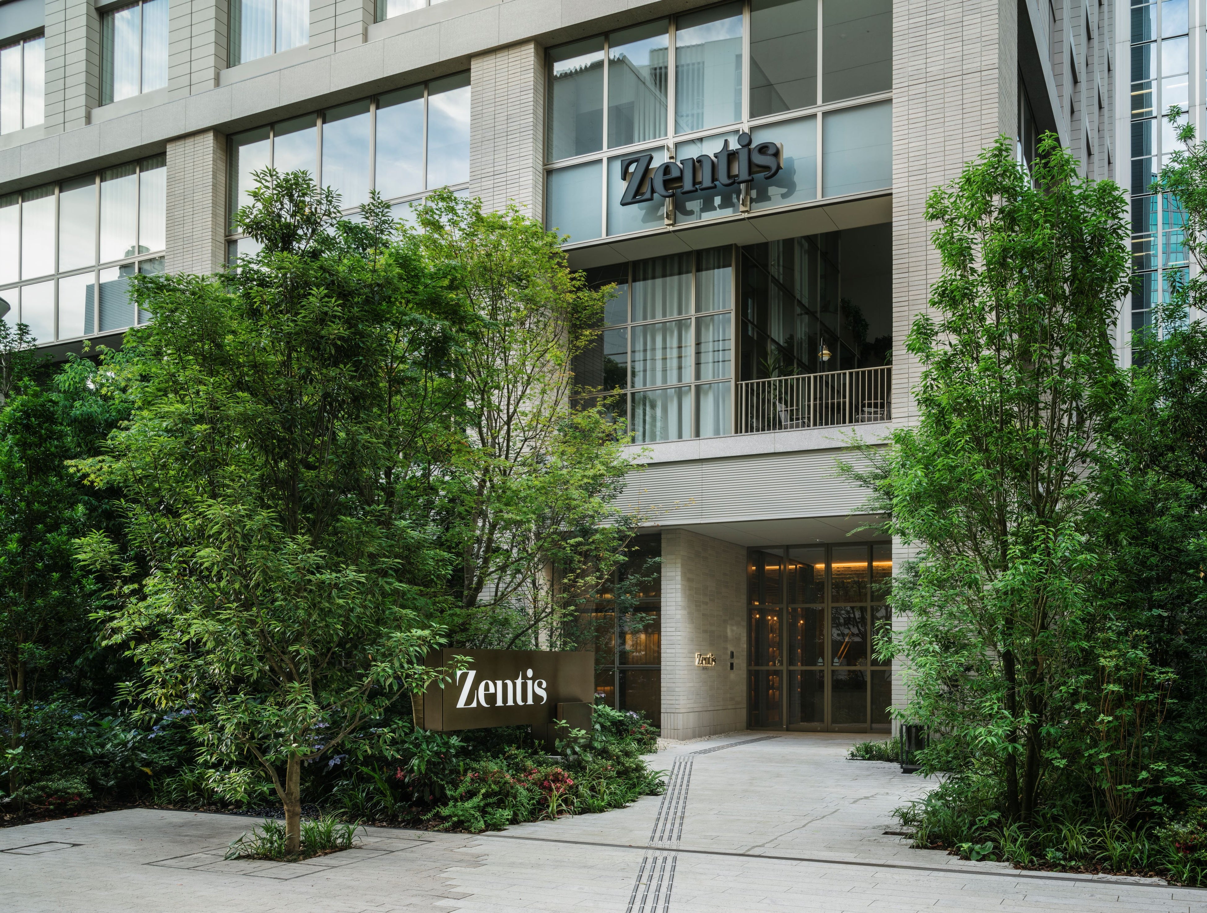 2020年7月に開業した、大阪・堂島浜に位置するホテル。パレスホテルが展開する宿泊主体型ホテルブランドの1号店。「Zentis」とは、究極を象徴する「Z」と、ラテン語で本質を表す「entis」、また日本語の「zento(前途)」、「en(縁)」から作られた造語。自らのライフスタイルの本質を極める人達が、暮らすように滞在を楽しみながら、前途を切り拓き、縁とめぐり合える場所になるという想いを込めています。