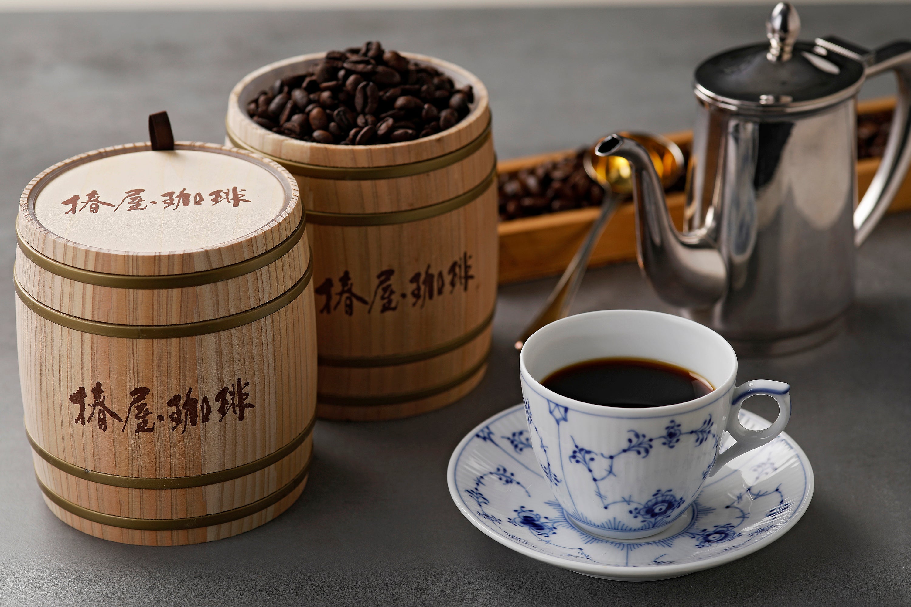 椿屋珈琲の看板ブレンド「椿屋スペシャルティブレンド」を木樽に詰めた上質なギフト。