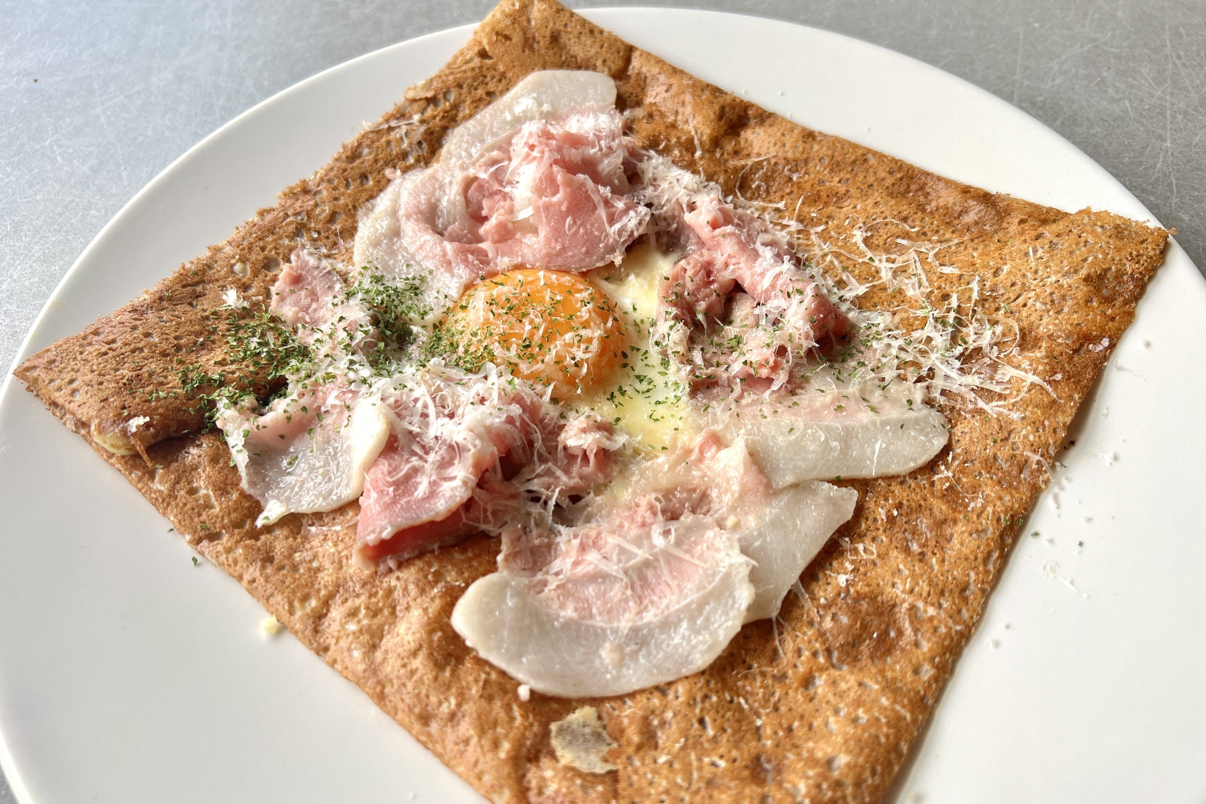 本場フランス・ブルターニュ地方のパリッ、もちっとした食感のクレープとガレットを再現するために、生地の仕込みから焼き上げまで妥協せず取り組んでいます。