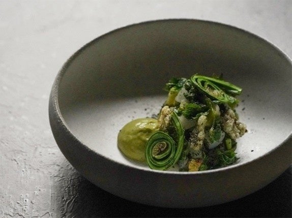 和生(ワヴィ)は、日本の和と仏語の生命を合わせた造語。コースは京都近郊の食材が中心。日仏が融和する。