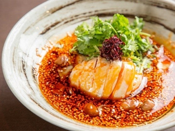 前菜は、四川式よだれ鶏が人気。蒸し餃子や肉焼売といった点心に修業地での経験が生きる。