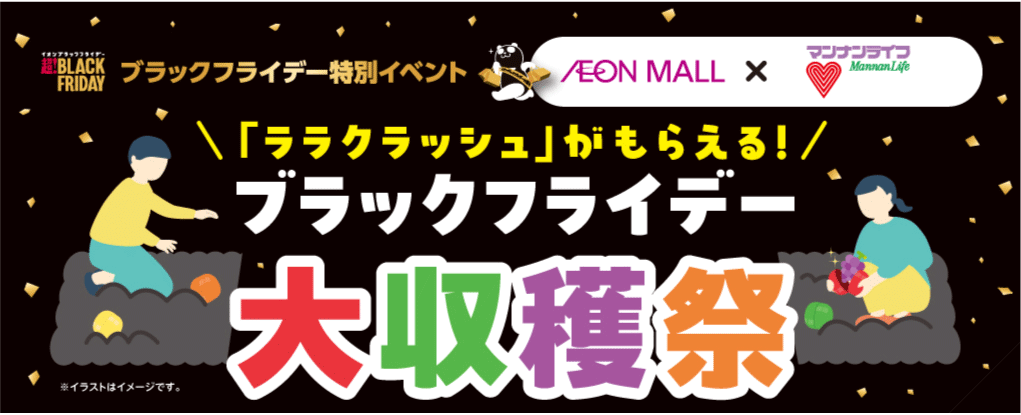 株式会社マンナンライフとイオンモール株式会社は協働で、イオンモール高崎、イオンモール太田(以下、「両モール」)において、今年で10周年を迎えるブラックフライデー特別企画「ブラックフライデー大収穫祭」を開催します。
