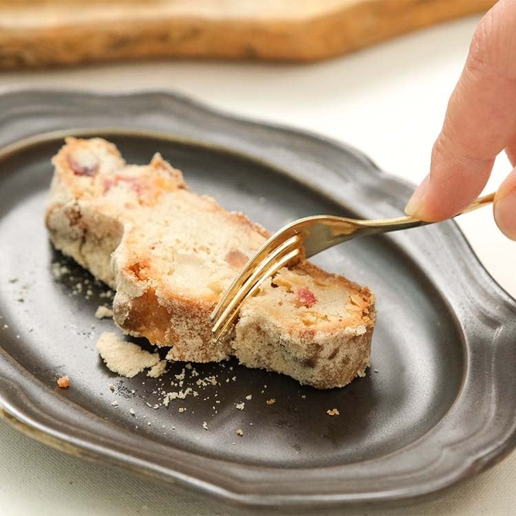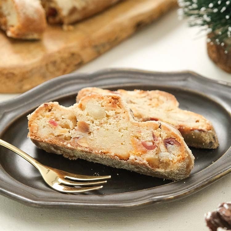 本商品は、国産小麦100%の生地に、マカダミアナッツ・アーモンド・クランベリー・パイナップルなどのドライフルーツをたっぷりと混ぜ込んだ、レーズン不使用のシュトーレンです。香り高いスパイスを控えめに配合し、重たすぎない味わいに仕上げました。レーズンが苦手な方はもちろん、これまでシュトーレンを食べたことがなかった方にも手に取りやすいホリデースイーツです。