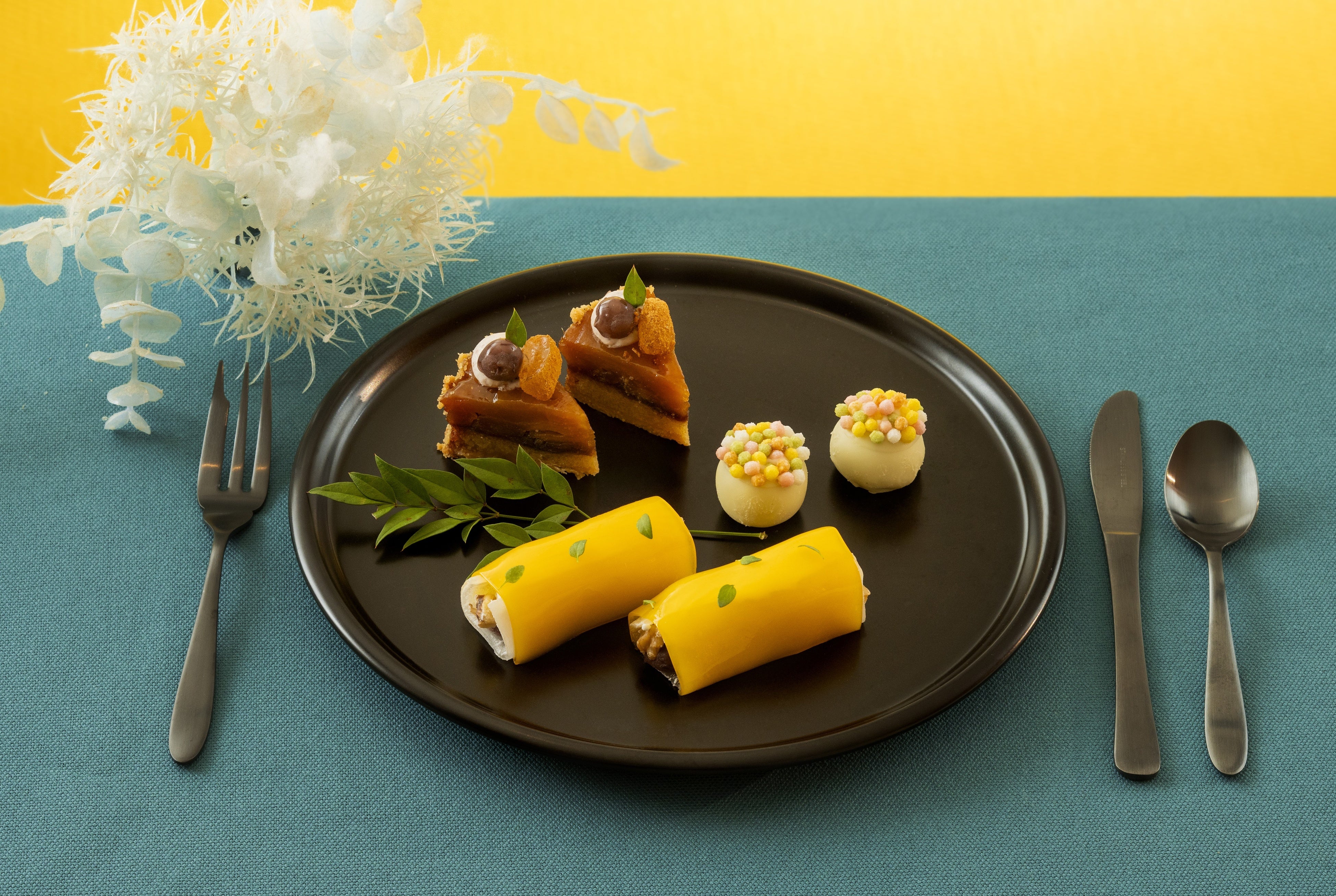 ミドルティアには、「和」をモチーフにした3種のスイーツをご用意。みかんやゆず、あんこといった馴染みある素材を繊細にアレンジし、冬の装いにふさわしい上品でぬくもりある味わいに仕上げています。