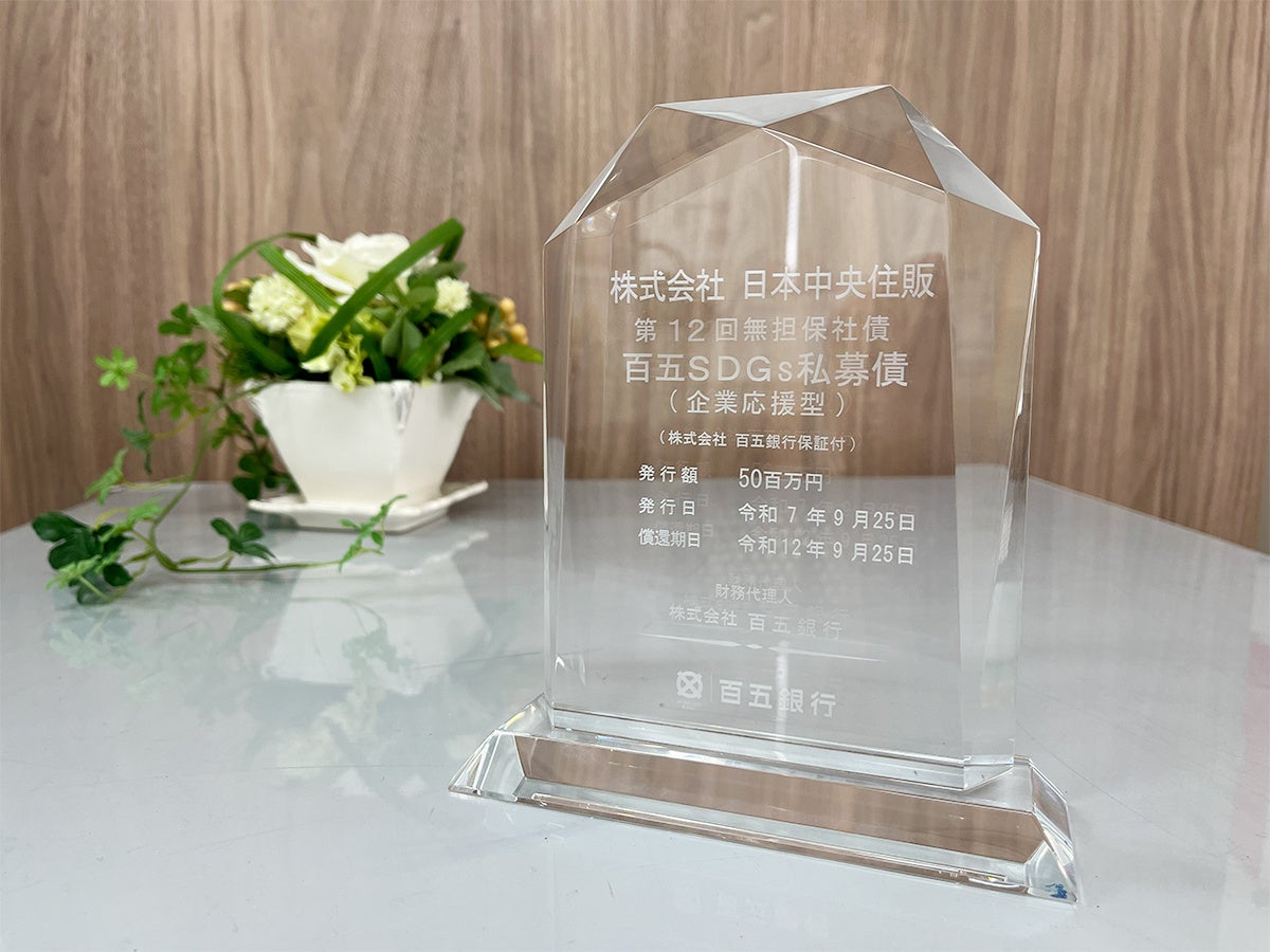株式会社日本中央住販(本社:奈良県奈良市)は、令和7年9月25日に百五銀行を引受先とする「SDGs私募債」を発行いたしました。この私募債を通じ、地域社会への貢献と持続可能な企業活動の推進をより一層強化してまいります。