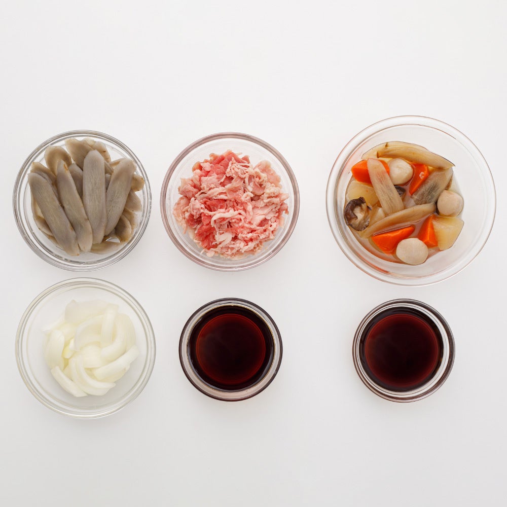 圧倒的に高い糖度と食べやすさが、各地で大人気の和田農園さんのごぼうをたっぷり使用しました。ごぼうと牛肉の旨味を詰め込んだ甘辛の牛ごぼう丼と、5 種類の野菜出汁で旨味を重ねたけんちん汁をお楽しみください。