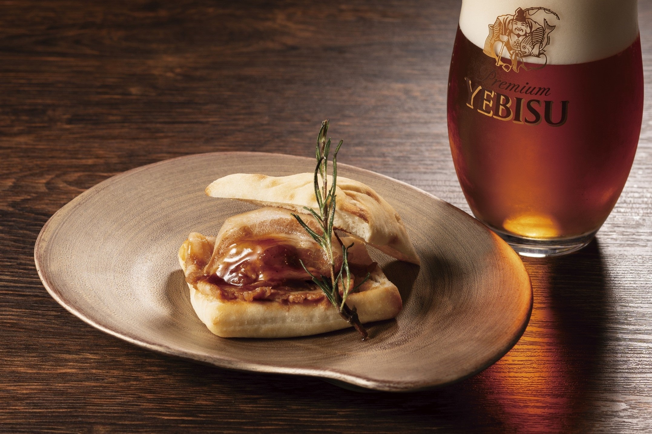 YEBISU BARではJAZZYの魅力を更に引き立たせるマリアージュメニュー「熟成BBQソースの小さなローストポークサンド」を販売します。