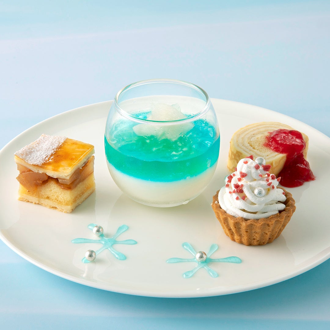 ヨーグルトパンナコッタとアイスブルーゼリー/ホワイトモンブランのタルト/ミルクレープロール/アップルパイ